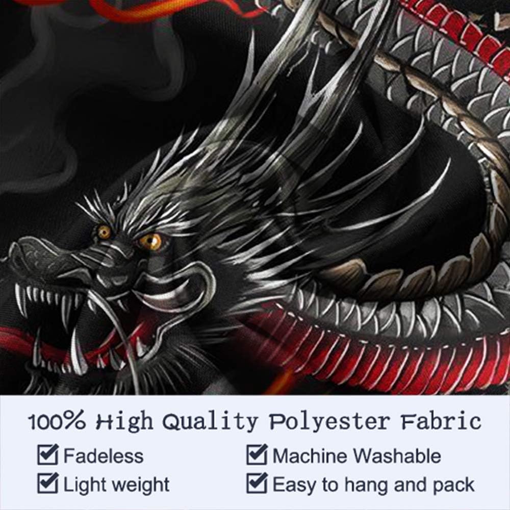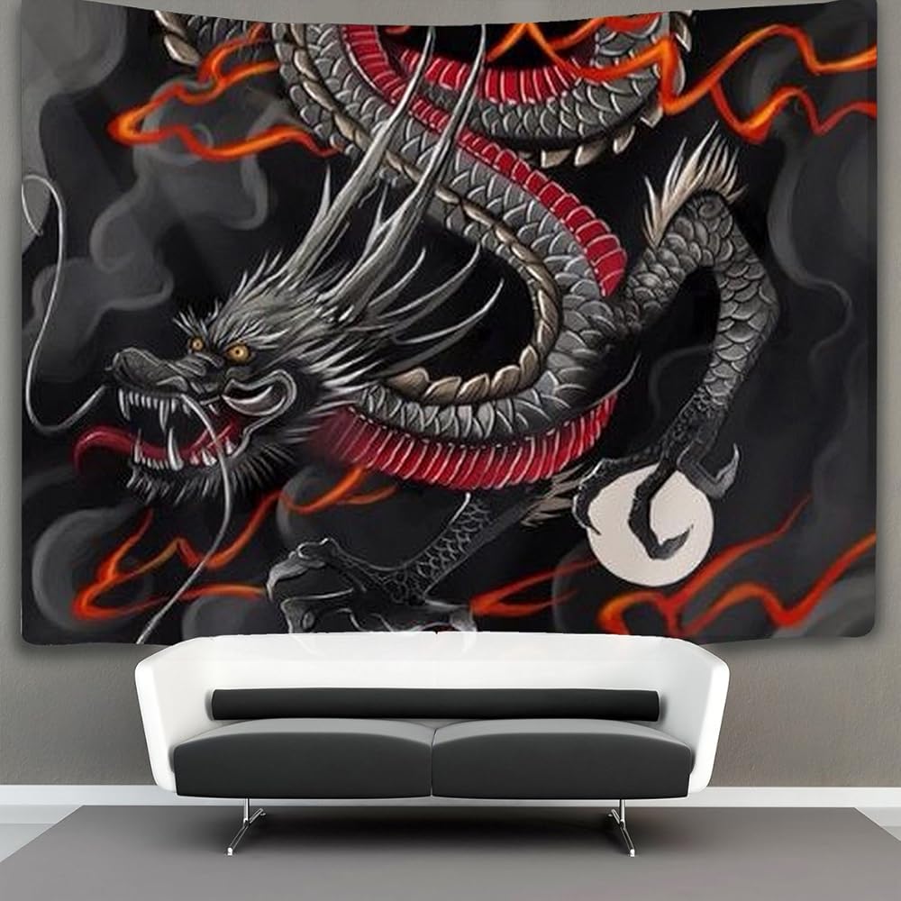 بساط حائط بتصميم فن التنين الصيني والياباني بلون اسود واحمر لديكور المنزل مقاس XL 40 × 60 انش لغرفة النوم والمعيشة والسكن الجامعي