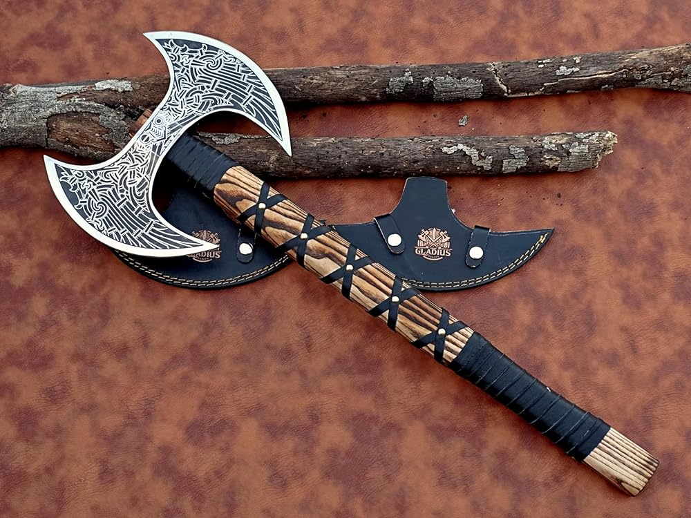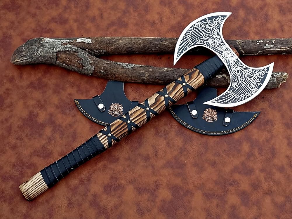 غلاديوس كرافتس | فأس فايكنغ رائع مصنوع يدويًا - مثالي لهواة الجمع والمتحمسين | أصلي، مصنوع بحرفية | فأس على طراز العصور الوسطى مزود بفولاذ متين وقوي عالي الكربون (GC-AX15)
