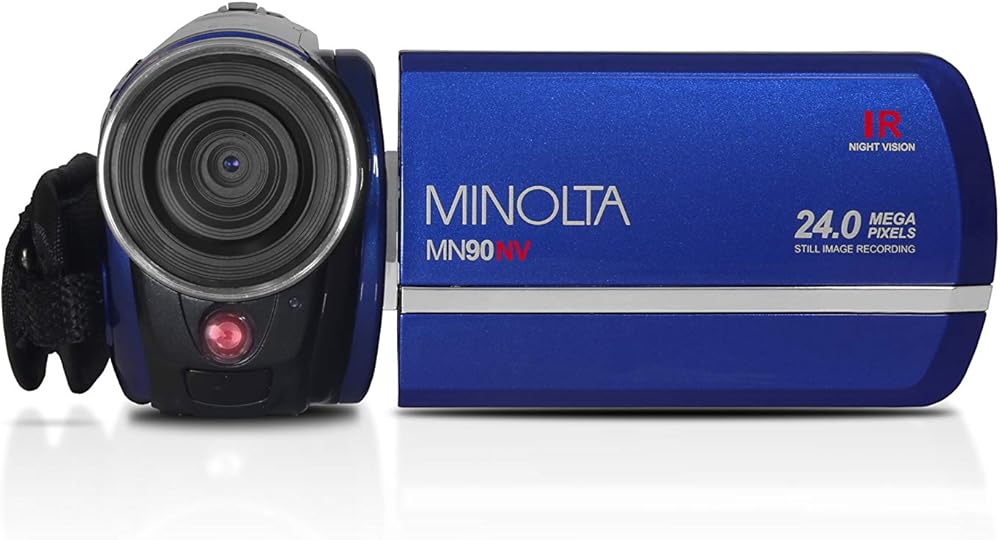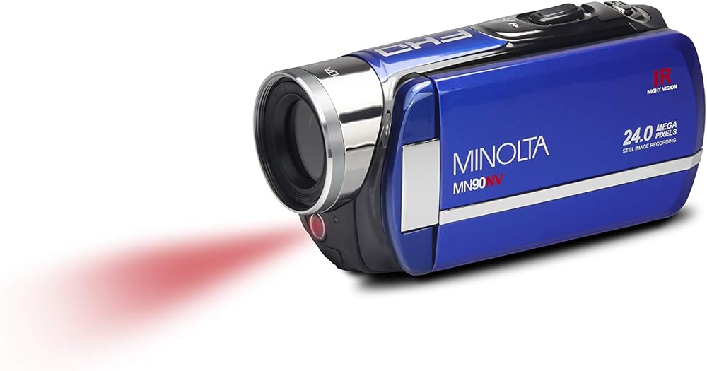Minolta's Blue MN90NV 1080p IR Night Vision Camcorder captures videos and pictures, day or night. With 24.0 MP max resolution, 1080p Full HD video resolution, 16x digital zoom and anti-shake image stabilization, the camera provides superb images. An infrared LED, with up to 35 ft. of coverage, and a 3.2 in. 262k LCD touchscreen monitor are ideal for night scenes and low-light conditions. With a 32 GB capacity SDHC storage slot, you can record hours of video and thousands of pictures!
