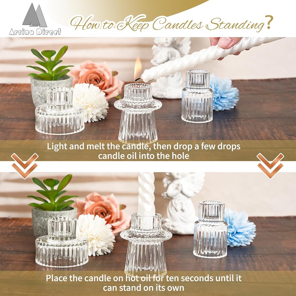 【Warm Tips】▲To maintain the stable standing of the candle, please attach the bottom of candle to the hot wax oil for 10 seconds.▲Glass candlesticks are fragile items that may break during transportation. If you receive any broken items, please contact us promptly to resolve the issue.