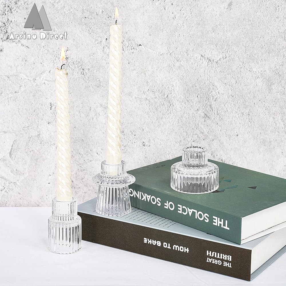 【High-Quality Safe Material】These candle holders are made of thickened glass and high-temperature resistant materials to ensure safe use during candle burning. The widened and thickened base effectively maintains the stability of the entire bracket.