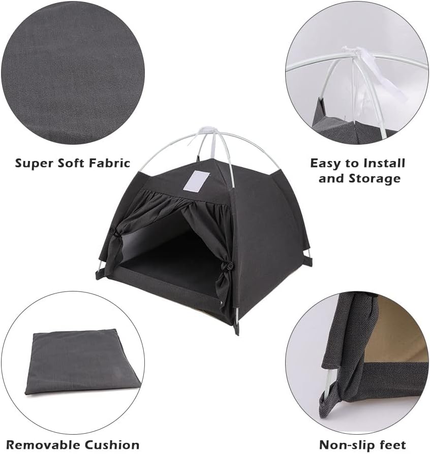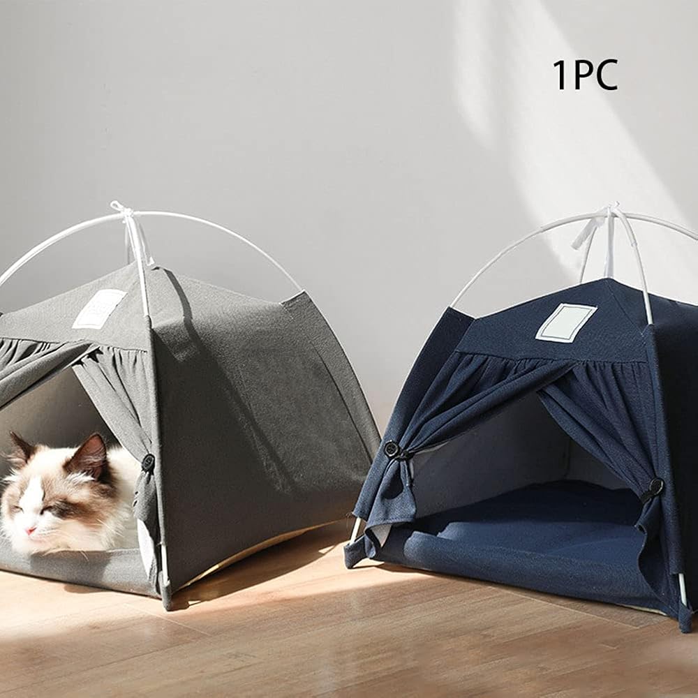 【خيمة حيوانات أليفة متعددة الاستخدامات】: خيمة الحيوانات الأليفة هذه مناسبة للقطط أو الحيوانات الأليفة التي يقل وزنها عن 12 كجم. توجد ستائر على كلا الجانبين، يمكن فتحها وإغلاقها، حتى يصبح حيوانك الأليف هادئًا ومسترخيًا، ويحسن جودة نوم حيوانك الأليف. .