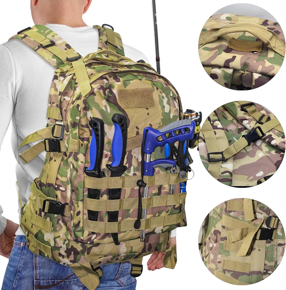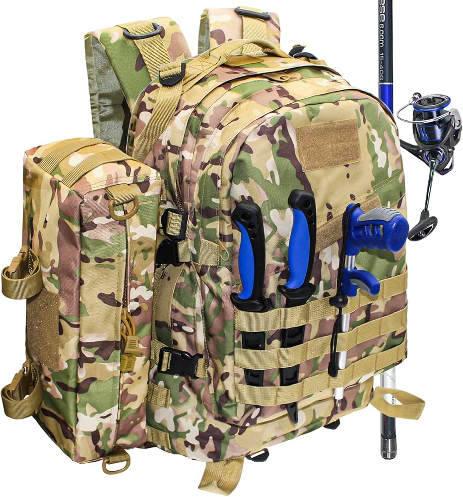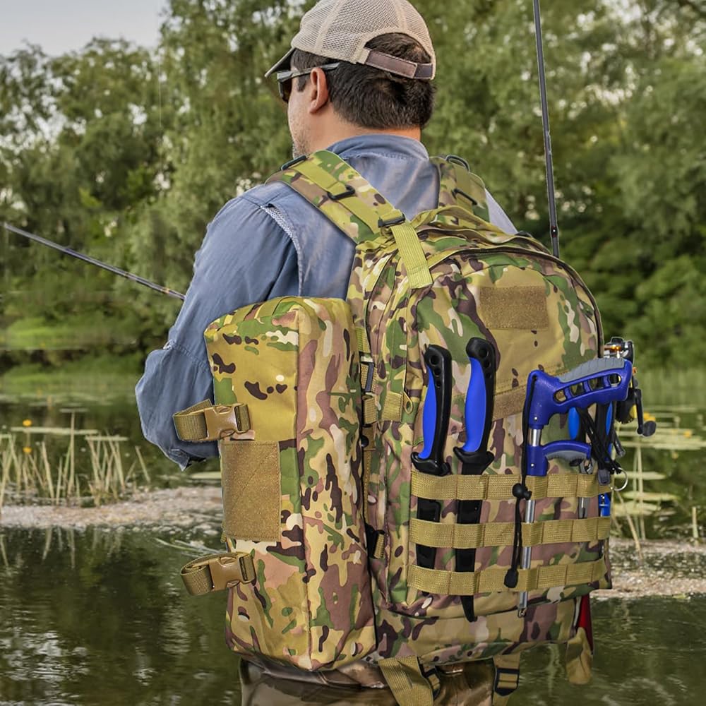 مادة متينة: حقائب الصيد مصنوعة من قماش أكسفورد عالي الجودة، مضاد للانزلاق ومتين. الظهر المبطن الناعم وتصميم أحزمة الكتف العلوية القابلة للتعديل مما يبقيه مريحًا وليس خانقًا. يمكنك حمل حقيبة أدوات الصيد لفترة طويلة دون الشعور بالتعب.