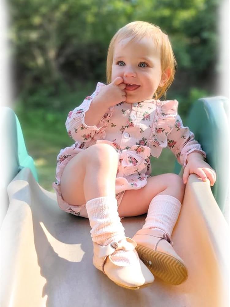 • 🌼🌼🌼 تصميم فريد: مجموعة ملابس رومبير من قطعة واحدة، رومبر بأكمام طويلة مكشكشة مع عقدة أمامية، ملابس خريفية مطبوعة بطباعة زهور، مطابقة لزوج من الجوارب الجميلة، تجعل طفلك أكثر روعة. إغلاق بالإطباق في الأسفل لسهولة تغيير الحفاضات، صورة ظلية فضفاضة مع مساحة كبيرة للحركة في الأنشطة اليومية.
