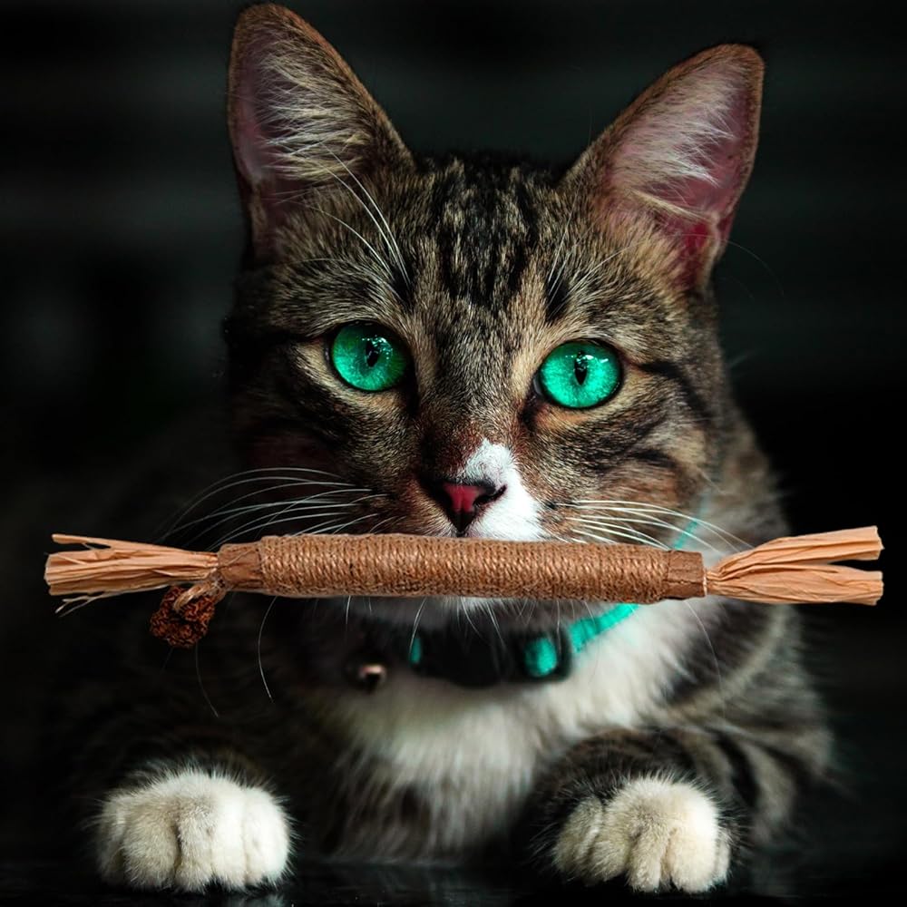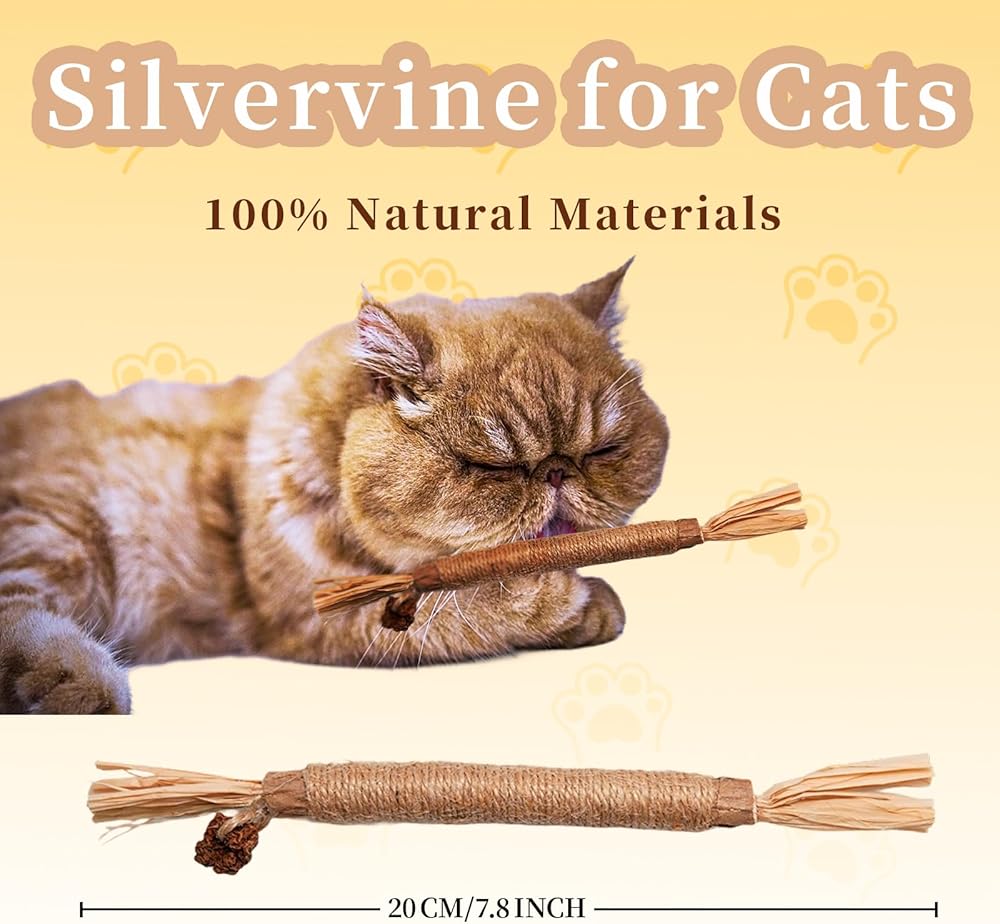 - [أفضل لعبة للقطط]: عصا سيلفرفاين غنية بالألياف النباتية، مما يعزز الهضم الصحي للقطط ويساعد على منع مشاكل كرات الشعر.