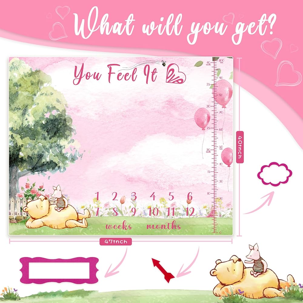 • Ideal Gift Choice: Whether it's for winnie themed baby shower or a thoughtful gift, this Baby Milestone Blanket is a perfect choice to shower expectant parents joy and love.