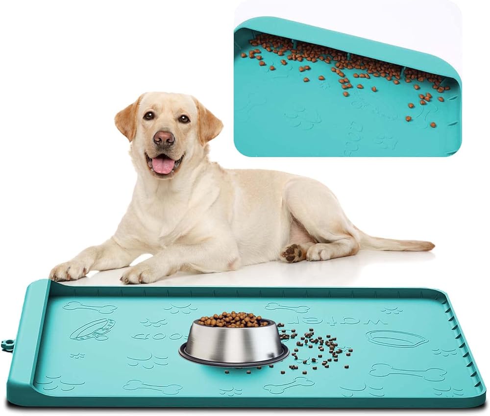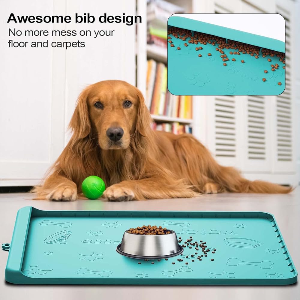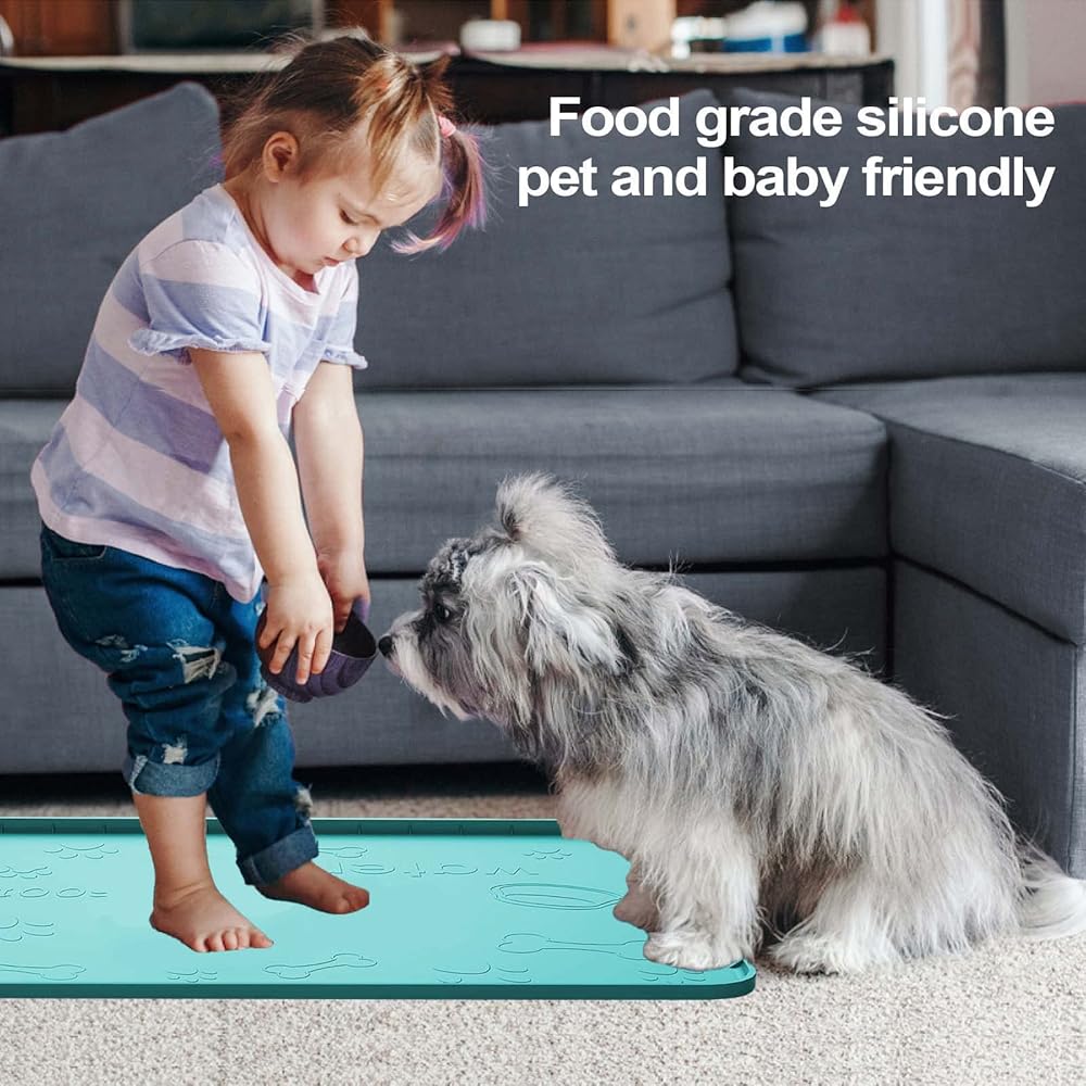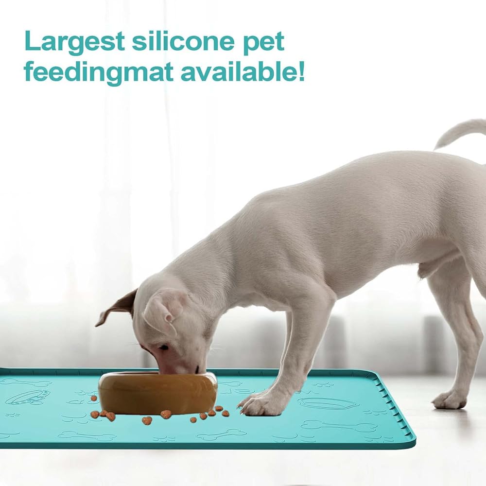 【هدية رائعة للحيوانات الأليفة】بساط التغذية هذا هو هدية رائعة لكلابك أو قططك، سيكون رائعًا للأرض للكلاب الكبيرة، فهو كبير وثقيل وسيبقى في مكانه، ولن يتمزق بسبب أظافر أصابع القدم أو ينجرف من قبل الكلاب التي تلعب.