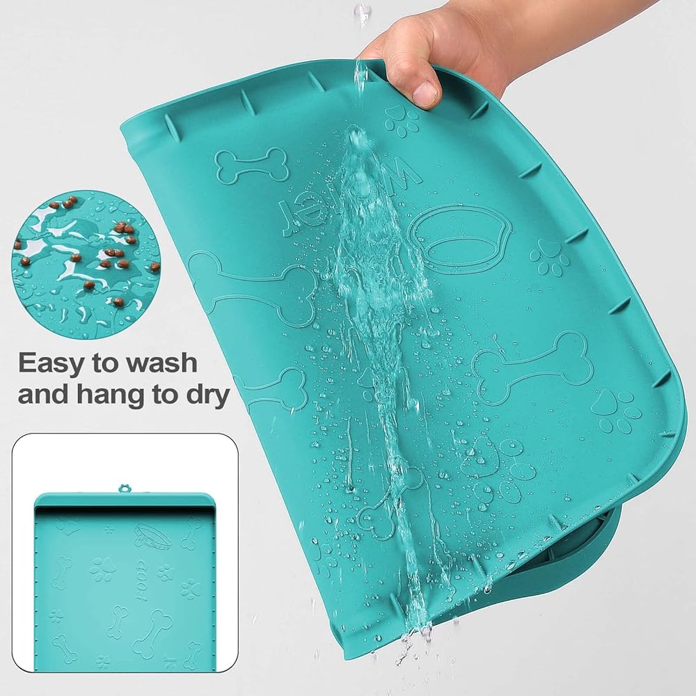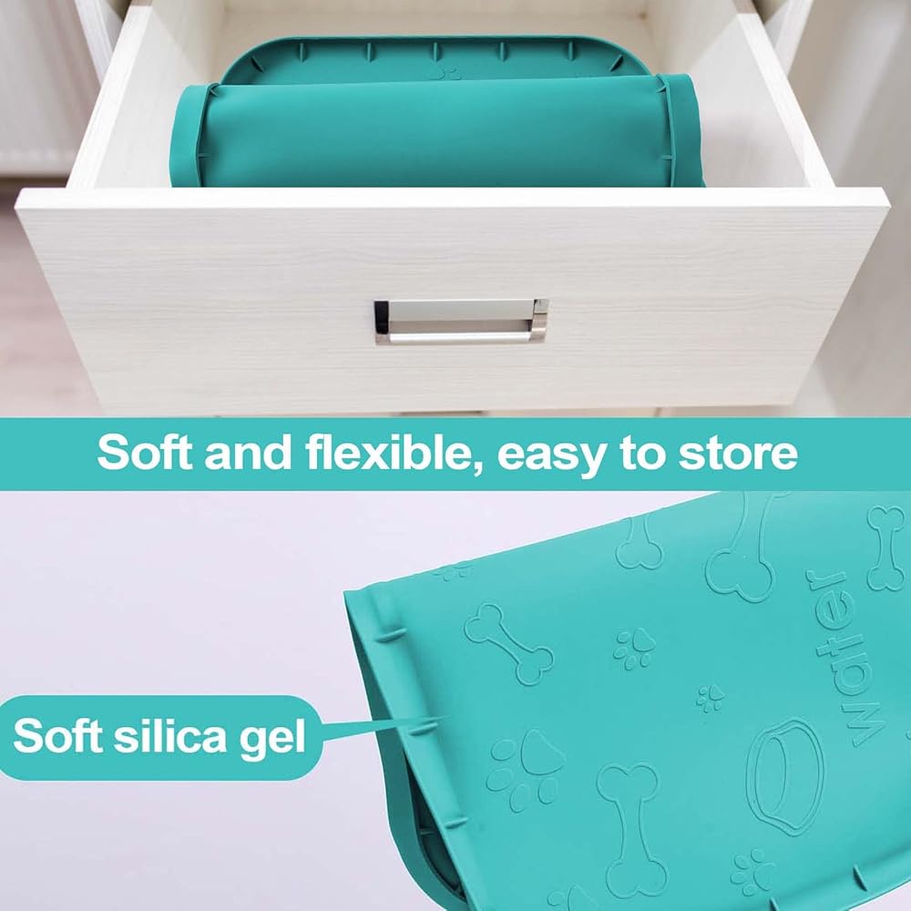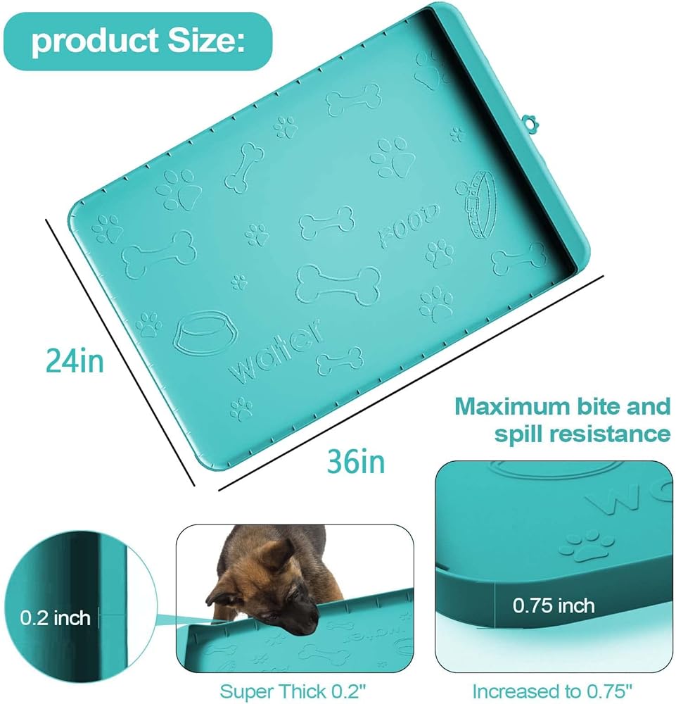 【سهلة التنظيف】مقاس كبير: 36 × 24 انش. هذه السجادة هي الحجم المثالي لأوعية الماء والطعام الخاصة بكلبك. التنظيف سهل مثل خرطومها وتعليقها في الشمس ويمكن تنظيفها في غسالة الأطباق، مما يوفر الكثير من الوقت.