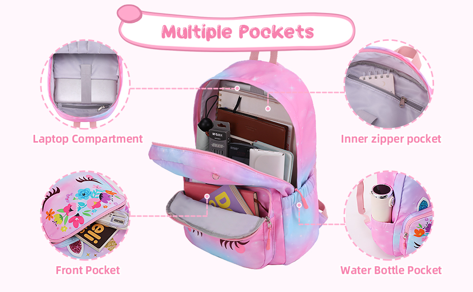 المتانة هي المفتاح، حقيبة الظهر يونيكورن الخاصة بنا مصنوعة من مادة البوليستر عالية الجودة المقاومة للماء والتي ليست خفيفة الوزن فحسب ولكنها سهلة التنظيف أيضًا. تضمن الخياطة المعززة والسحابات المتينة طول عمر استخدامه، بينما يوفر التصميم المريح مع أحزمة الكتف المبطنة وبطانة شبكية قابلة للتعديل ولوحة خلفية شبكية ناعمة راحة ودعمًا استثنائيين، حتى أثناء الارتداء الطويل.