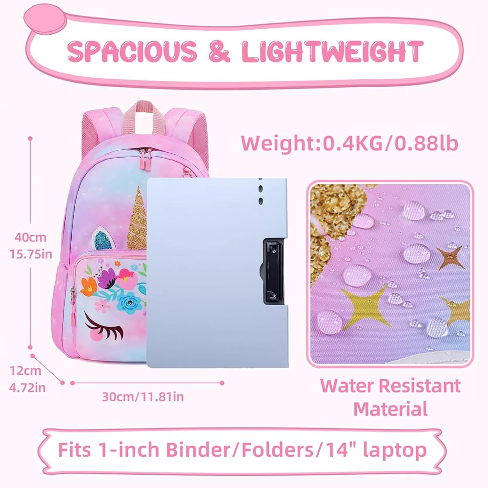 مقاس 15.75 × 11.81 × 4.72 انش (40 سم × 30 سم × 12 سم) وتزن 1.21 باوند فقط (0.55 كجم)، توفر شنطة الظهر يونيكورن هذه مساحة واسعة دون المساس بإمكانية الحمل. سواء كانت للمدرسة أو الرعاية النهارية أو السفر، فإن حقيبة الظهر هذه توفر مزيجًا مثاليًا من الرحابة والراحة خفيفة الوزن.