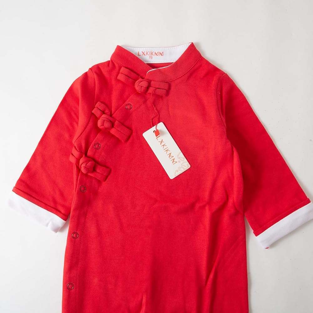 • رومبر صيني لطيف وممتع، بأكمام طويلة، تصميم بإبزيم طبق تقليدي صيني