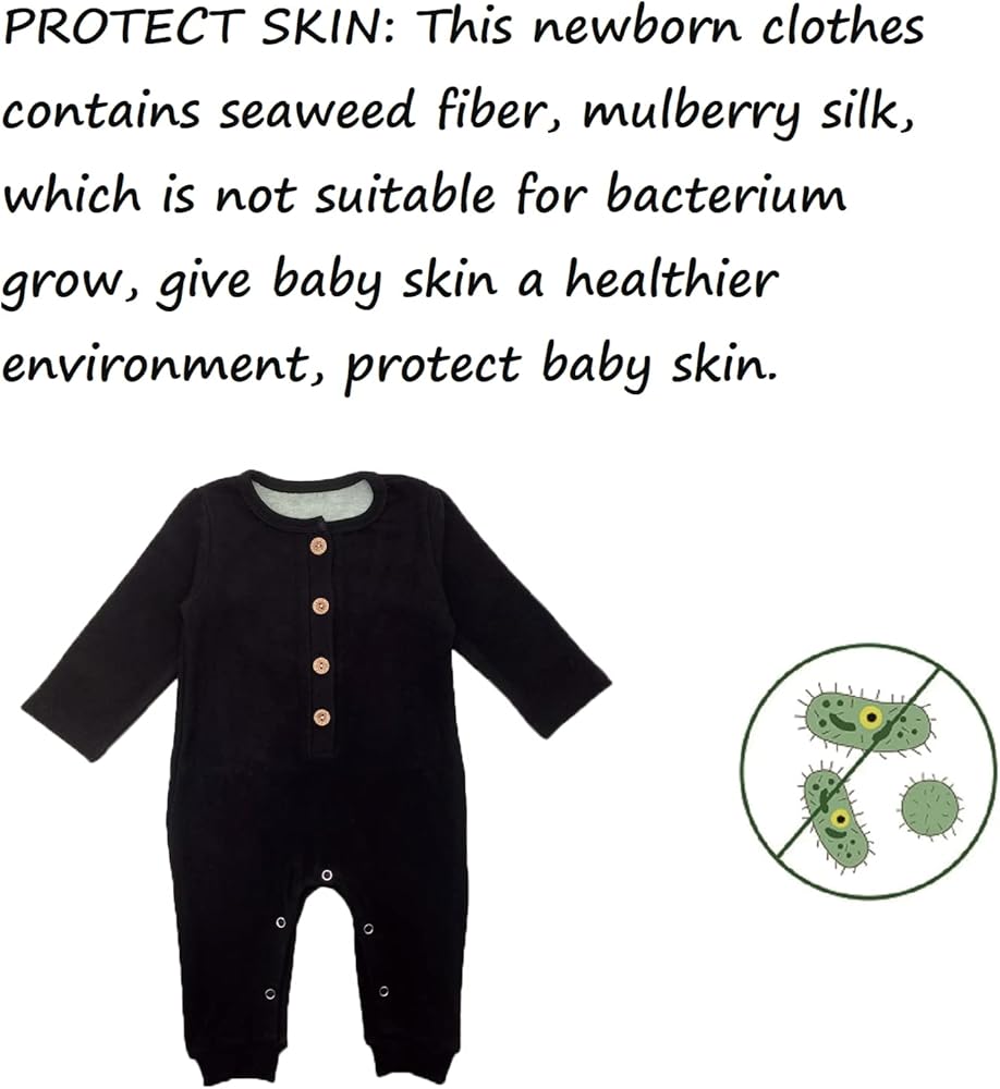 • PROTECT SKIN: This newborn clothes contains seaweed fiber, mulberry silk, which is not suitable for bacterium grow, give baby skin a healthier environment, protect baby skin.