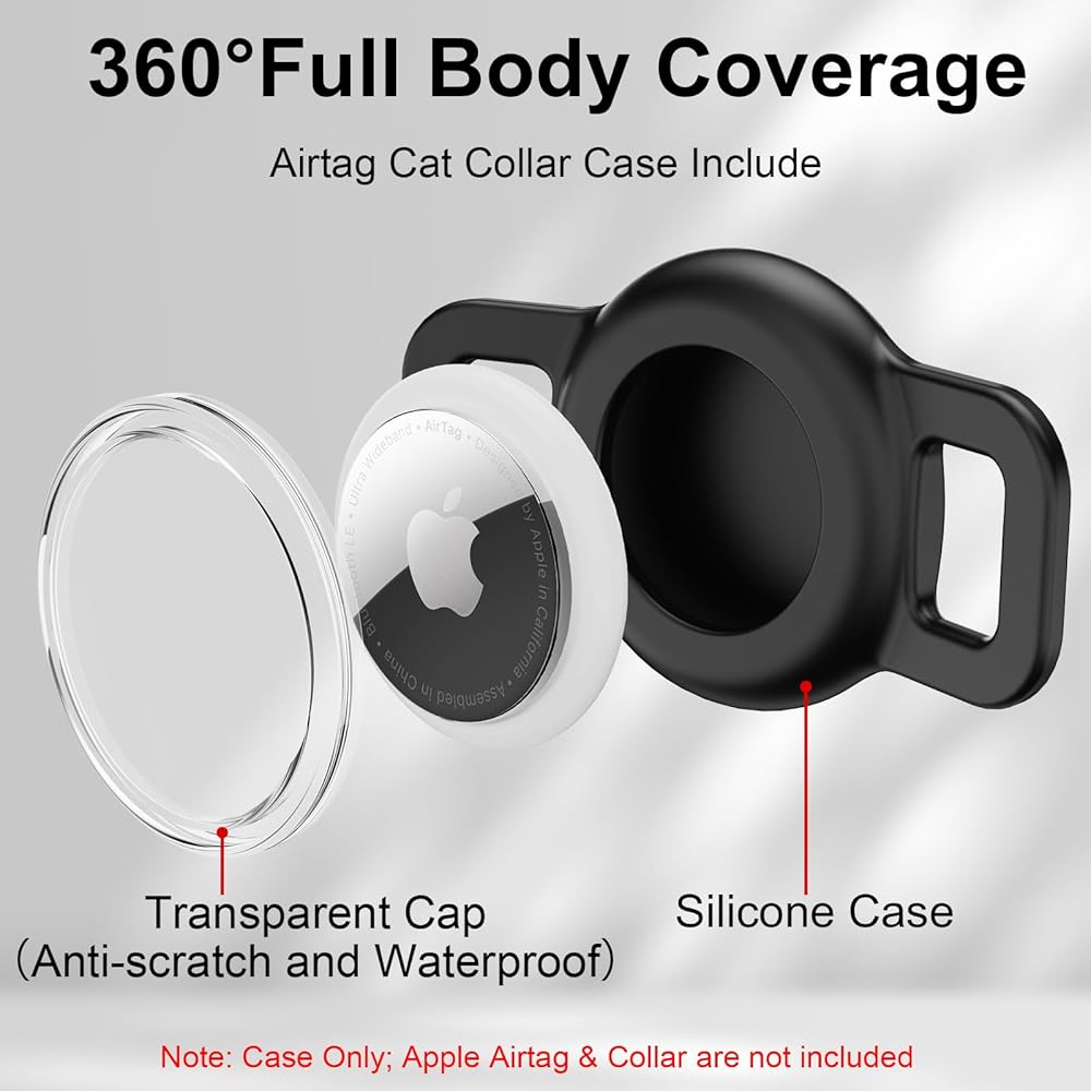 【مضاد للسقوط والاهتزاز】تم تصميم حامل AirTag بأذنين، ويمكن تثبيته بإحكام على أي مادة من أطواق الحيوانات الأليفة. تصميم التغطية الكاملة يمكن أن يتجنب الضوضاء والاهتزاز أثناء الحركة