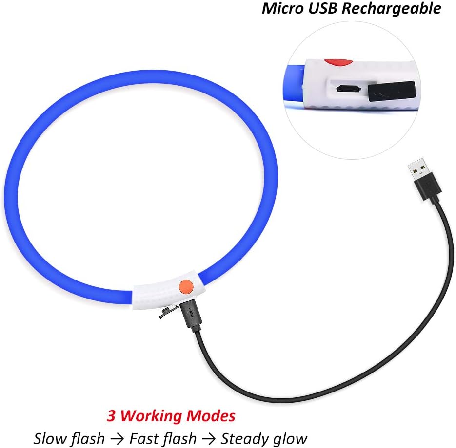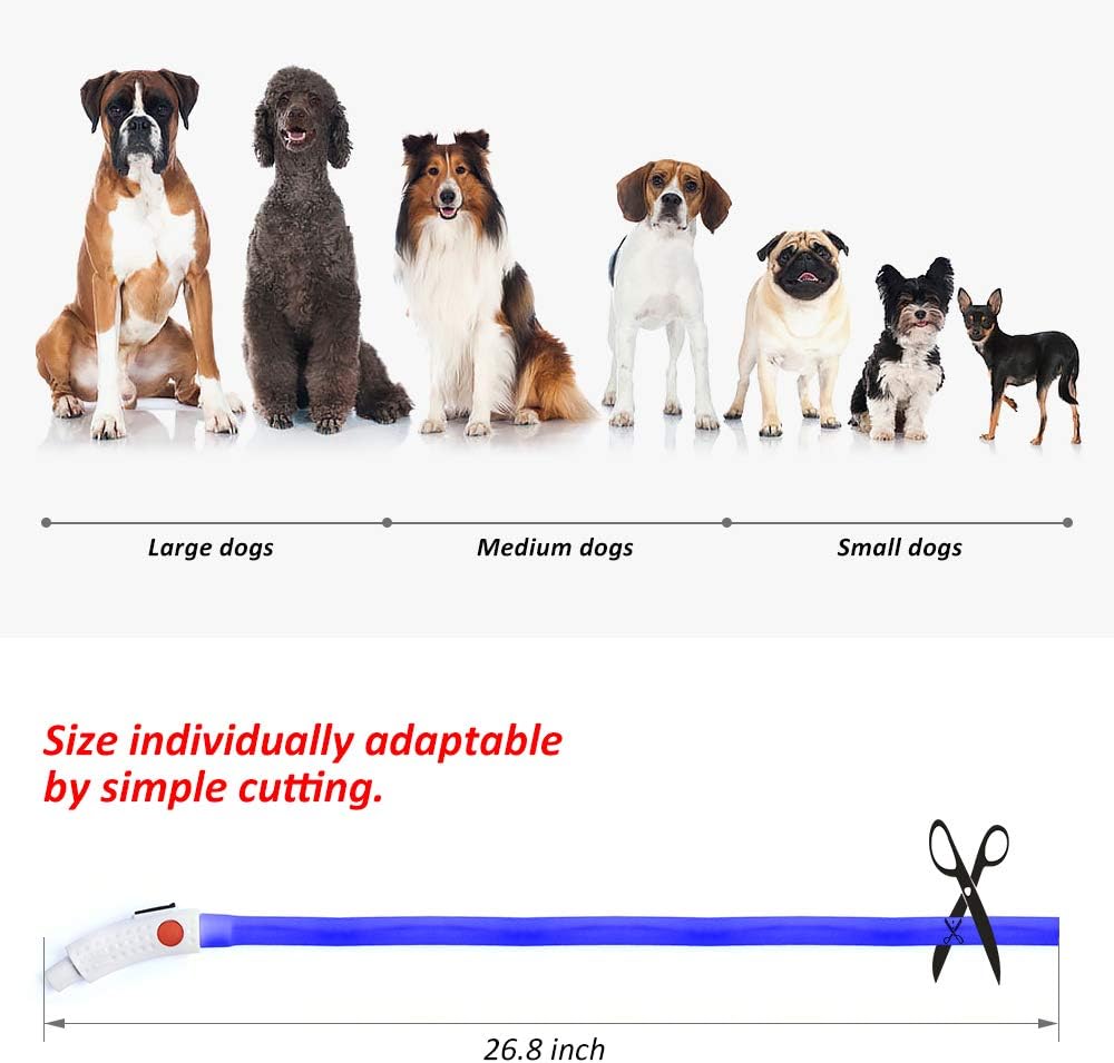 1. Glow in the dark with LEDs strips to let this collar be light up from any directions.