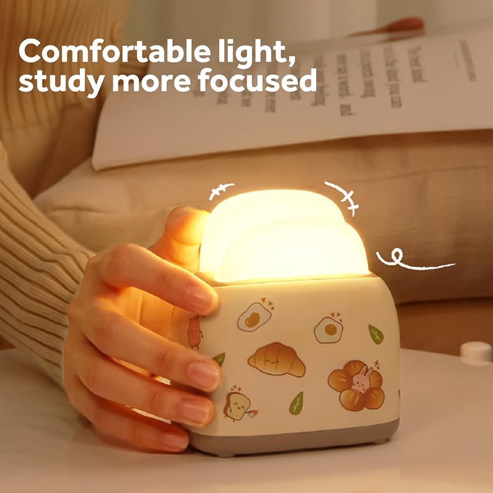 Adorable Toaster Design: This Kawaii table light is shaped like a retro toaster and features high-grade quality. The 3000K warm light is gentle on the eyes and blends naturally with your furniture and decor. Use it as a night light, end table lamp, or ambiance lamp.