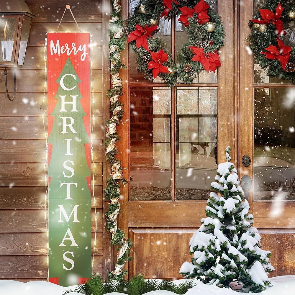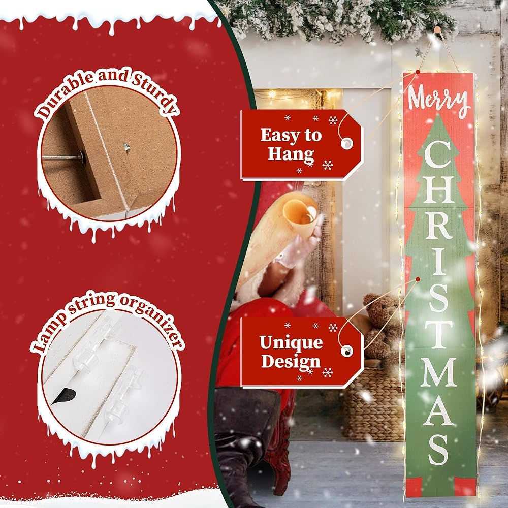 🎄.【صناعة متينة تدوم طويلاً】: صُممت لتتحمل العناصر، لافتة الشرفة الخاصة بنا مصنوعة بدقة من الخشب عالي الجودة. وهذا يضمن صموده بقوة أمام اختبار الزمن وتحديات الاستخدام الخارجي، مما يعد بمواسم ممتعة. توجد فتحات تعليق في الخلف مثبتة بمسامير مزدوجة للمساعدة في ضمان الثبات عند التعليق.