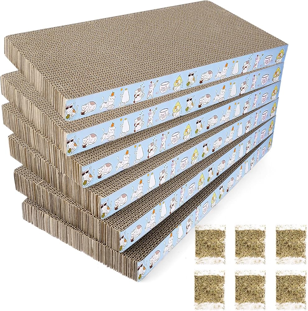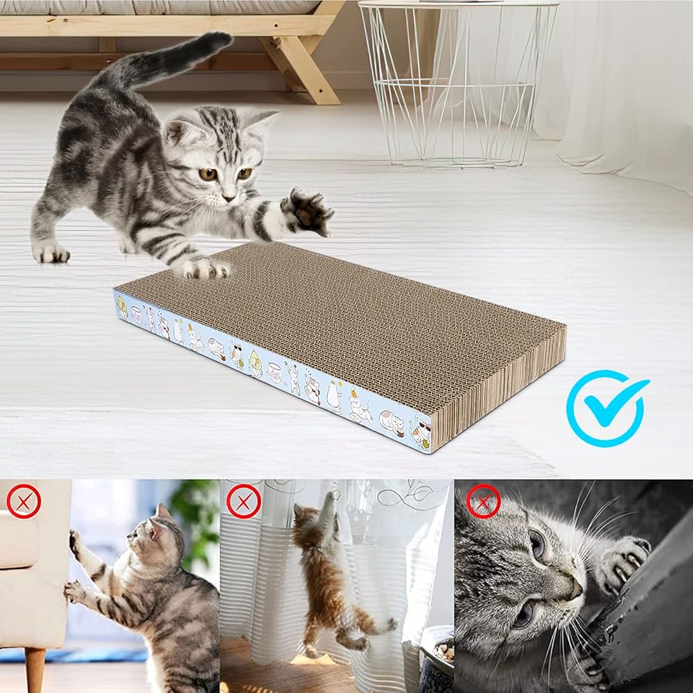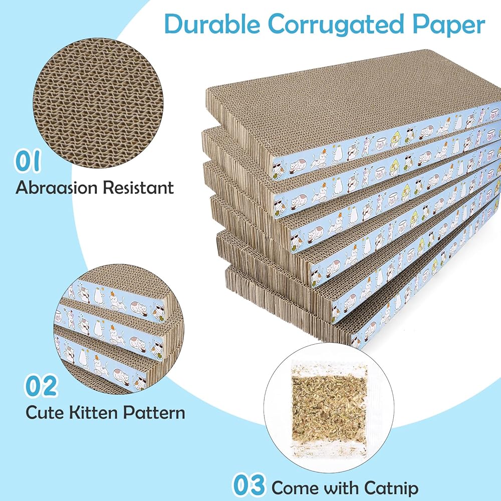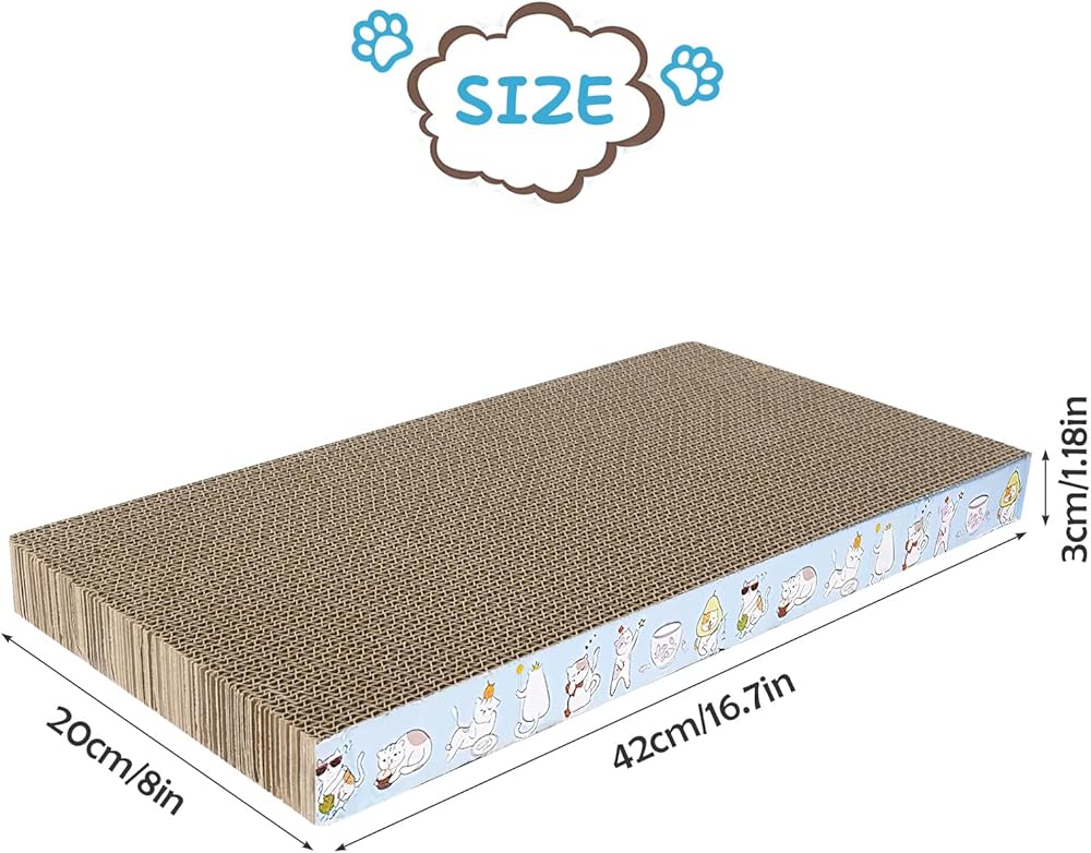 أفضل منتج للخدش بالحجم: ستحصل على 6 ألواح خدش للقطط. حجم الورق المقوى: 16.7 × 8 × 1.18 بوصة. مناسبة للقطط الكبيرة والصغيرة للعب والنوم وشحذ مخالبها