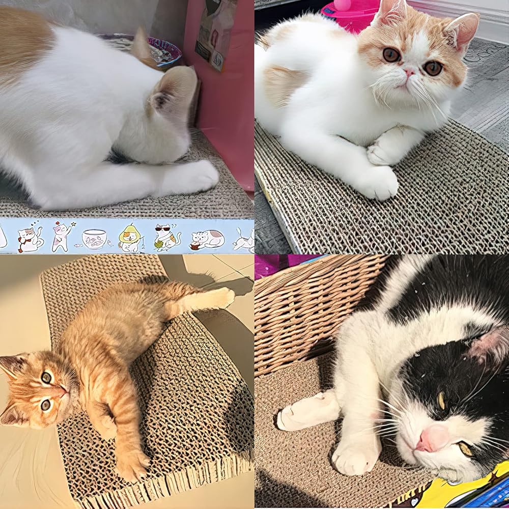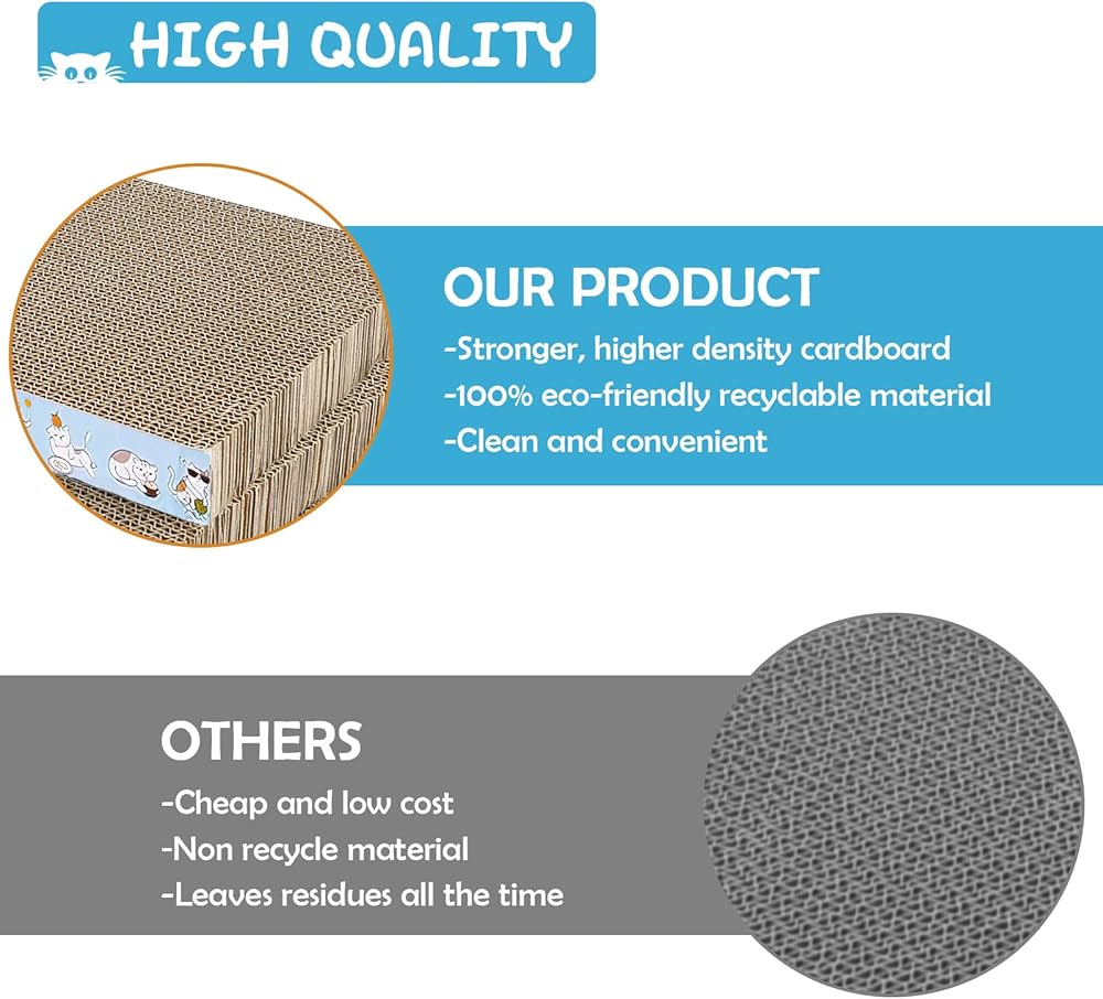 مادة فاخرة: لوح خدش القطط مصنوع من ورق مموج، ويحتوي على غراء غير سام ومواد غير ضارة، صديقة للبيئة ومعاد تدويرها، صحية جدًا لقطتك المحبوبة.