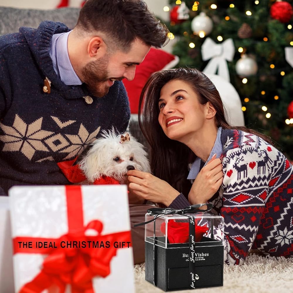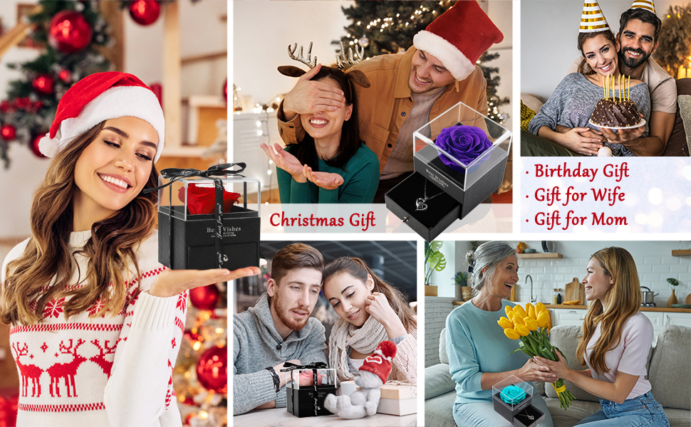 صندوق هدايا عقد وردي، وردي طبيعي منعش، صندوق هدايا مجوهرات وردة الورد، أفضل هدية لعيد الميلاد، عيد الحب، عيد الأم، اقتراح الزواج، هذا النوع من المناسبات