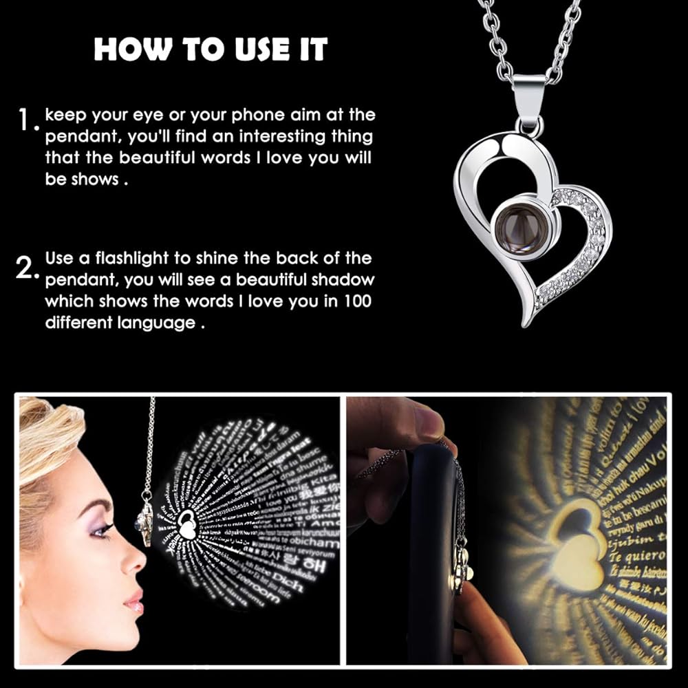 هدايا للصديقة: كيف ترى "أنا أحبك" - يوجد درج صغير مع قلادة I Love You بـ 100 لغة. في بيئة جيدة الإضاءة، أغلقي عين واحدة وأجلبي الخرزة في منتصف القلادة إلى عين أخرى لترى. أو بخلاف ذلك، قم بتشغيل كاميرا الهاتف وإدخال العدسات إلى الخرزة. سترى 100 لغة على الشاشة.