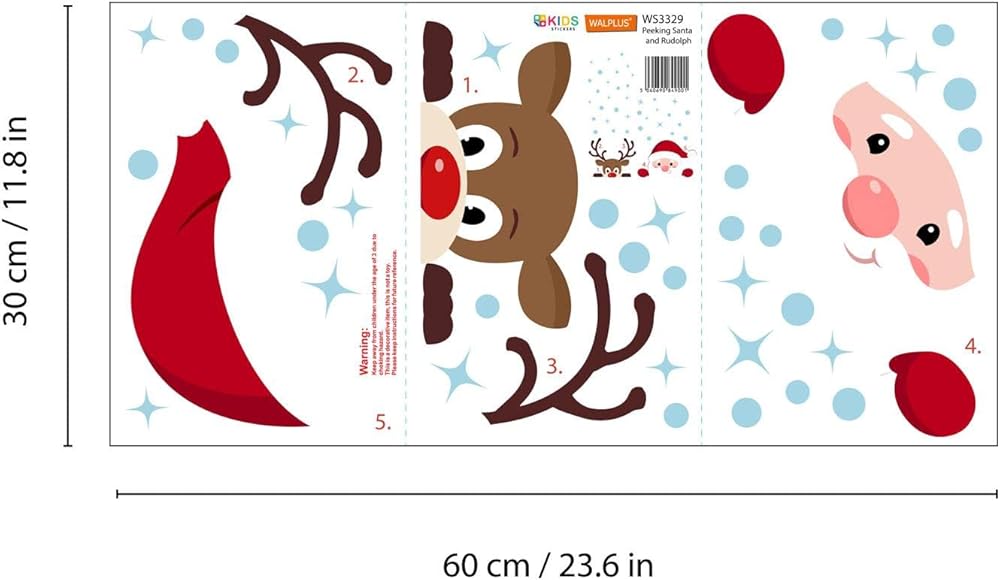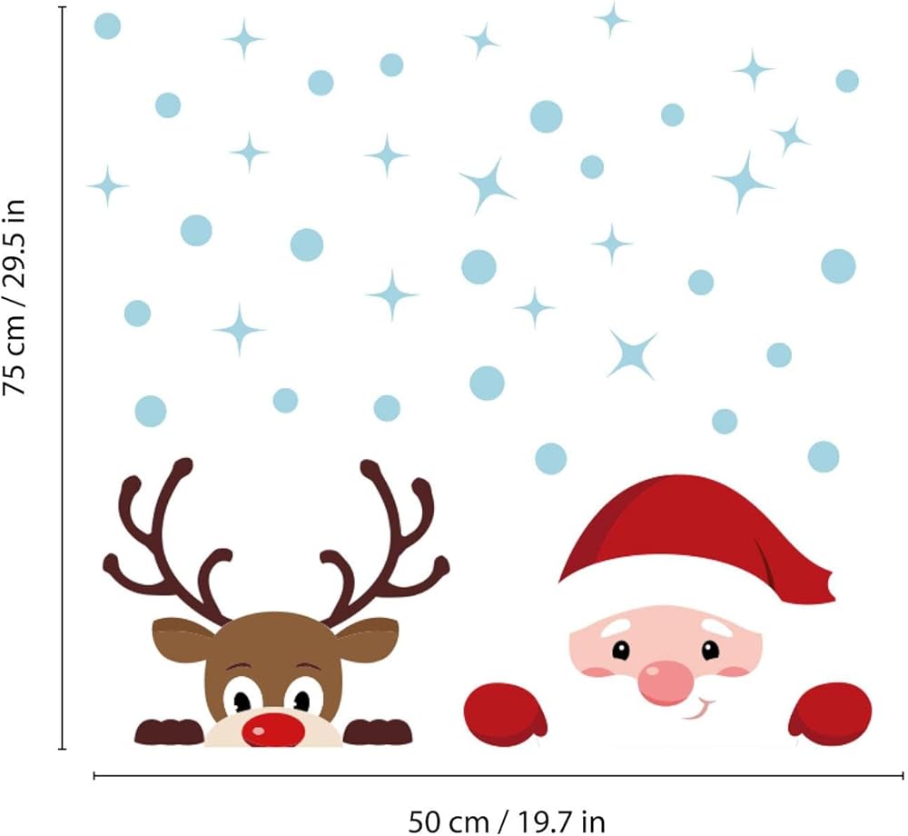 WALPLUS عيد الميلاد نافذة يتمسك زينة عيد الميلاد التخليص عيد الميلاد الجدار ملصق على الوجهين قابلة لإعادة الاستخدام قشر وعصا قابلة للإزالة لغرفة المعيشة الزجاجية تطل على سانتا ورودولف 38 قطعة