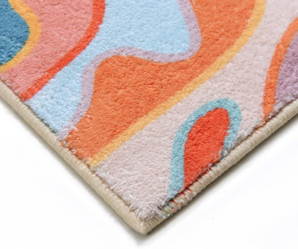 Abstract art area rug-- YoKii contemporary area rug designed with multi-colored Trippy pattern made a great home addition.