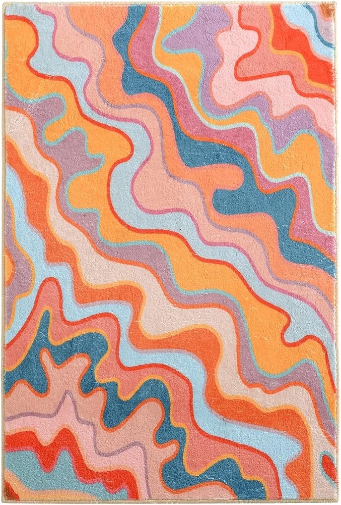 • -- AESTHETIC RUG ROOM DECOR -- Add an eye-popping design to your home with this abstract area rug. This geometric area rug features an trippy colorful weave stripes pattern and boasts a modern and hippie style, this piece is bound to become a personal favorite for years to come.