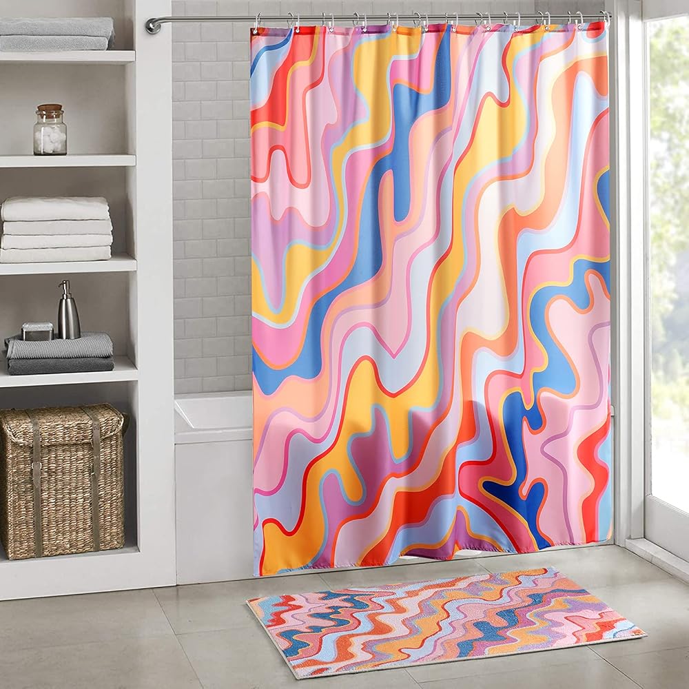 - Non slip cute aesthetic bathroom rug/ bathroom decor. (Guest, master, kids), comfy under foot and kind of absorbent water.