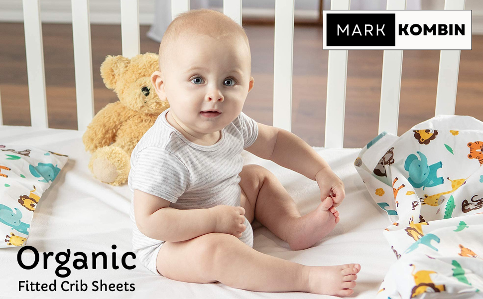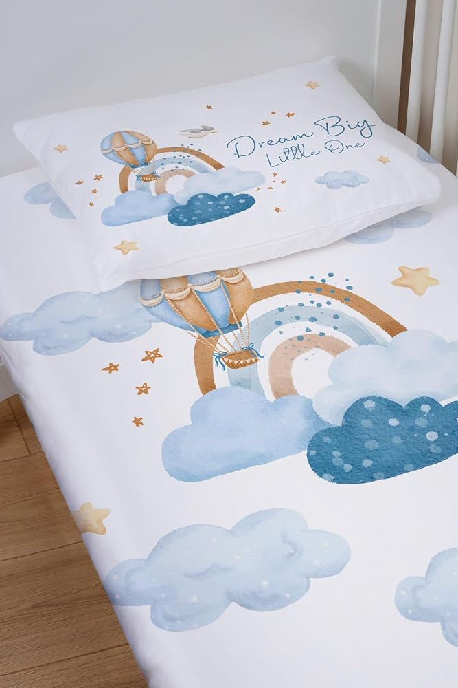 Markkombin-Blue Clouds Baby ملاءة وغطاء وسادة من القطن الناعم العضوي، ملاءات سرير قطنية، ملاءات أطفال ناعمة لسرير الأطفال، ملاءة سرير مناسبة للجنسين، ملاءة سرير جاهزة 52 بوصة طول × 28 عرض، كيس وسادة 45.72 سم طول × 14 عرض
