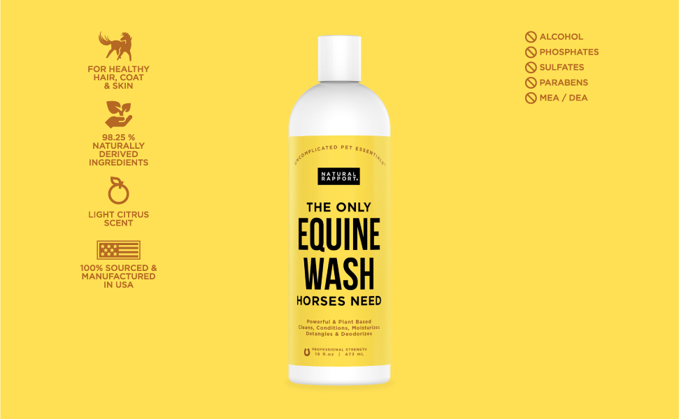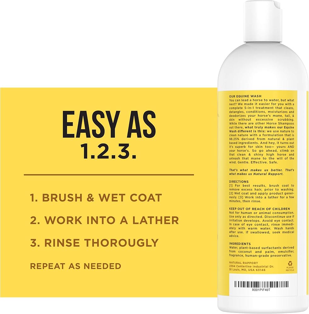 5-IN-1 TREATMENT - The Natural Rapport Complete Equine Wash works as a complete 5-in-1 treatment as a hair conditioner and detangler while simultaneously bathing, cleaning, moisturizing, and deodorizing your horse's mane, tail, and skin.