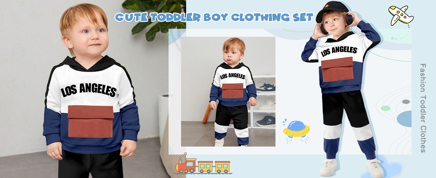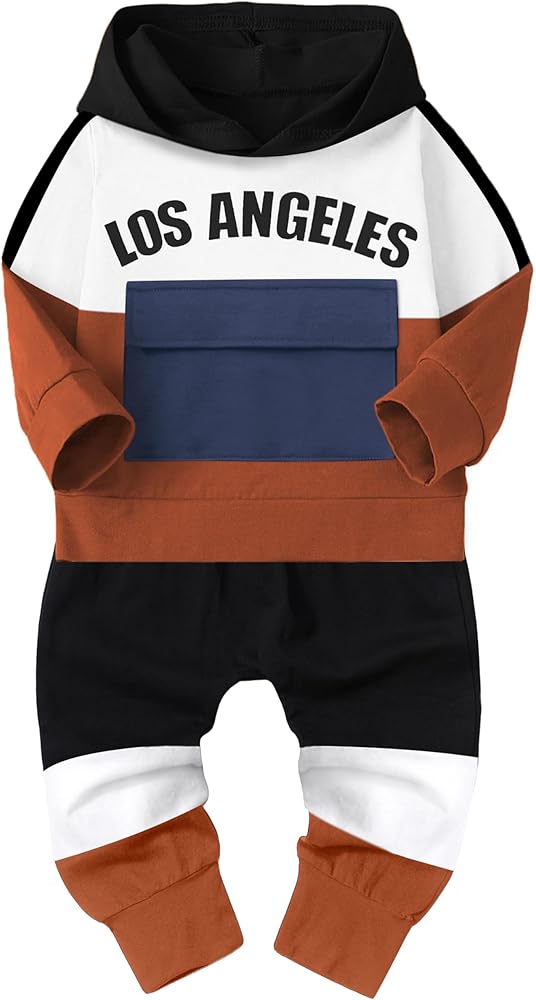 👓👓تصميم عصري: ملابس الأولاد الصغار لدينا عبارة عن سترة ذات قلنسوة ملونة وأكمام طويلة، وتصميم مطبوع عليه حروف "LOS ANGELES" وجيب أمامي عملي، وسراويل الركض الكاجوال ذات الخصر المرن ستجعل طفلك يشعر بالراحة عند ارتدائه. هذه العناصر العصرية ستجعل طفلك الصغير أكثر جمالاً وسحرًا، وستحصل على المزيد من الإطراء في نفس الوقت. طفلك الصغير سوف يعجبه!