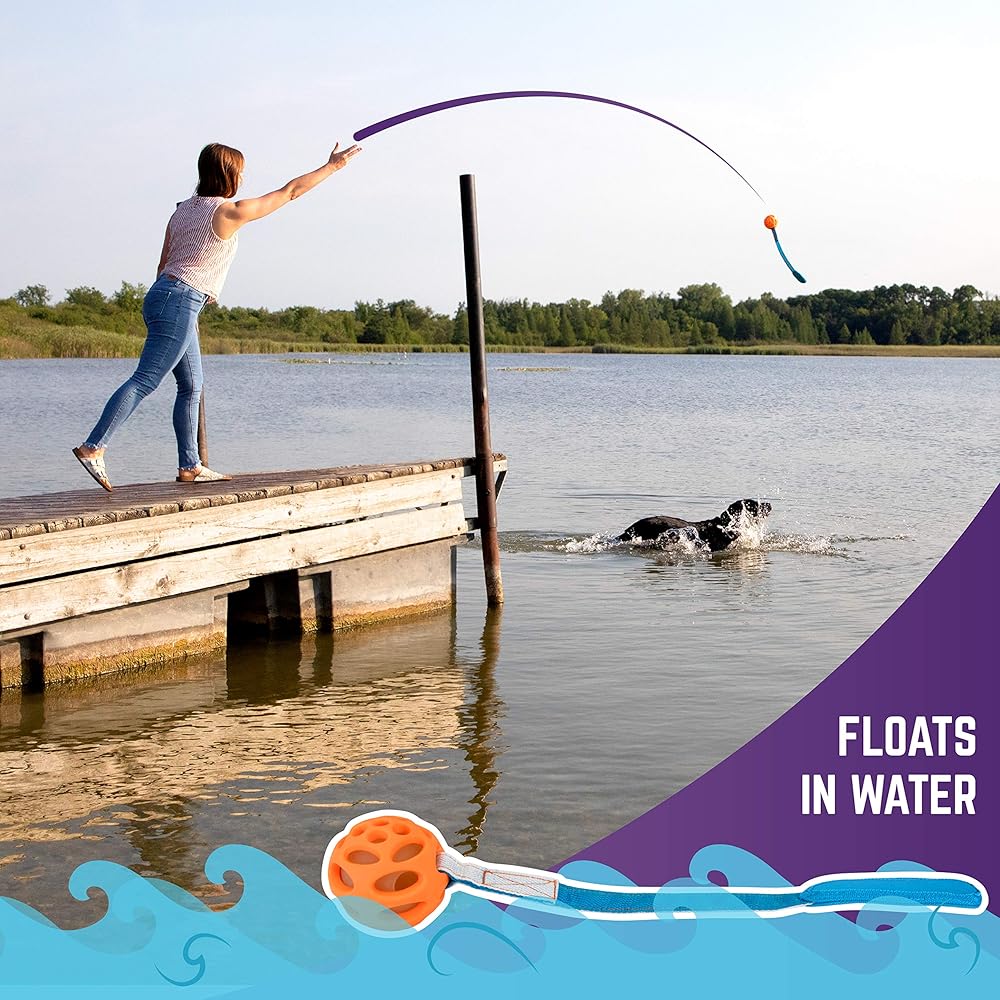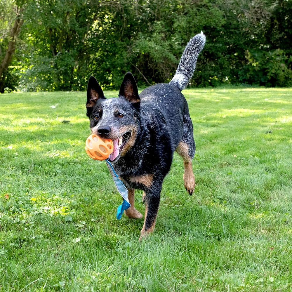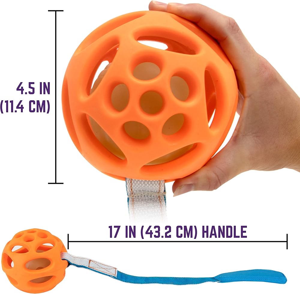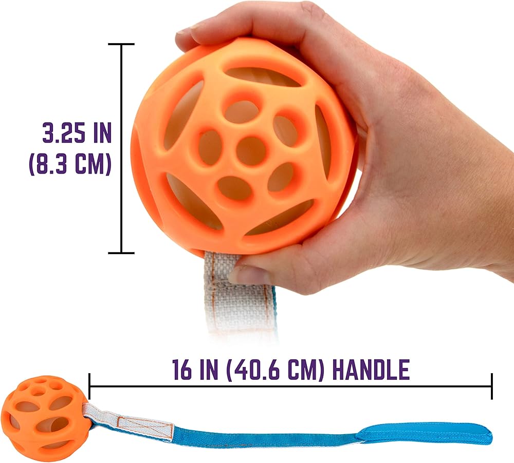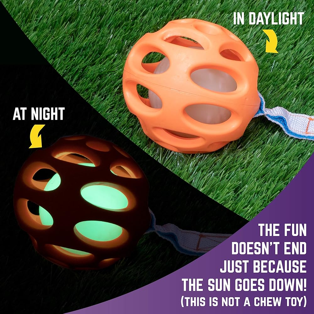 تتضمن 3 كرات مطاطية طبيعية متينة، 1 كرة إحضار متوهجة في الظلام، 1 قاذف كرات