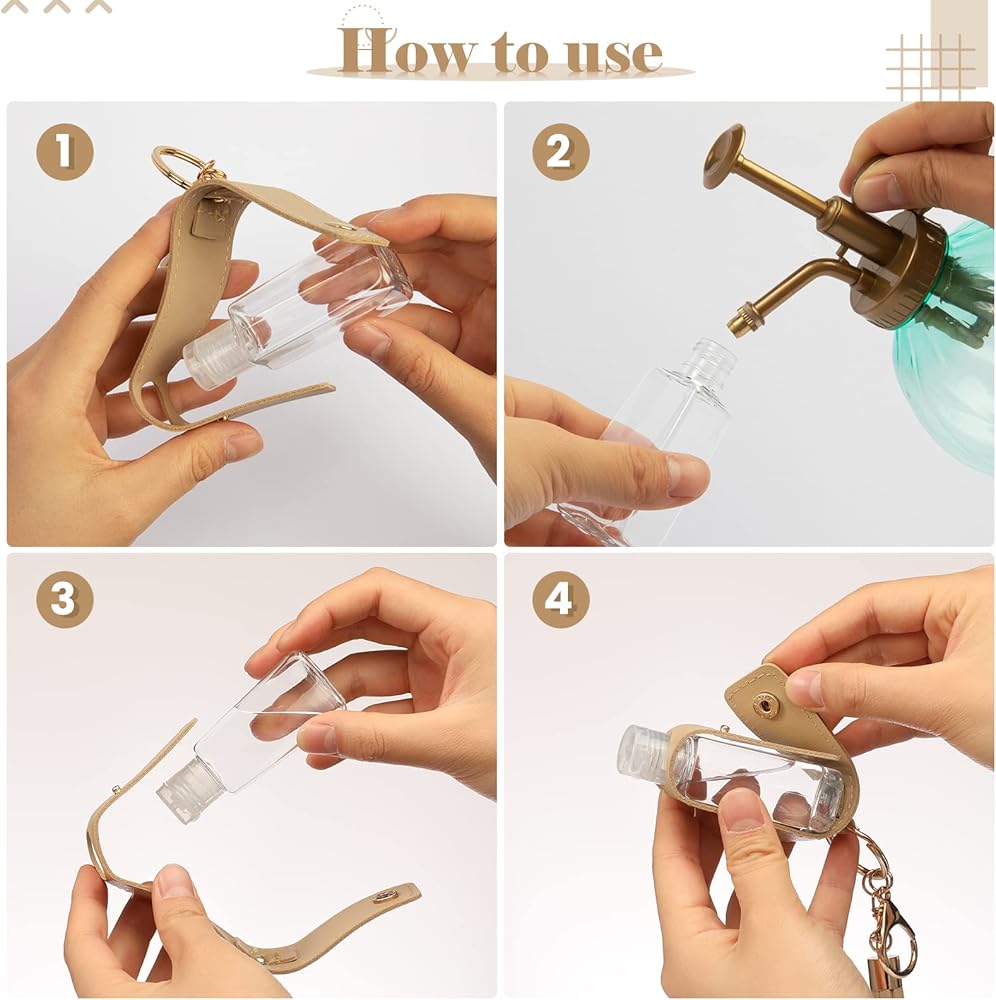 استخدام واسع: حامل سلسلة مفاتيح معقم اليدين هذا مثالي لحمل معقم اليدين أو اللوشن أو الصابون أو الكحول أو الزيوت العطرية أو أدوات الزينة أو غيرها من المنتجات السائلة. مناسبة للمدرسة والمكتب والتخييم والسفر والنزهات وأكثر من ذلك.