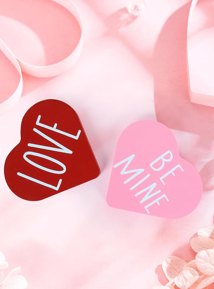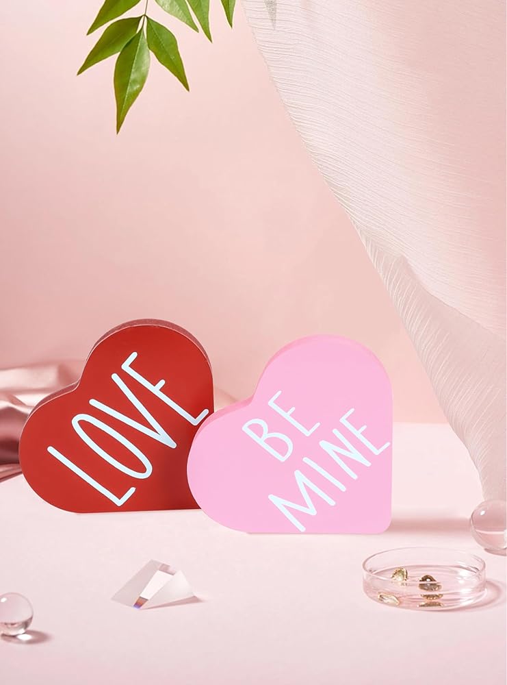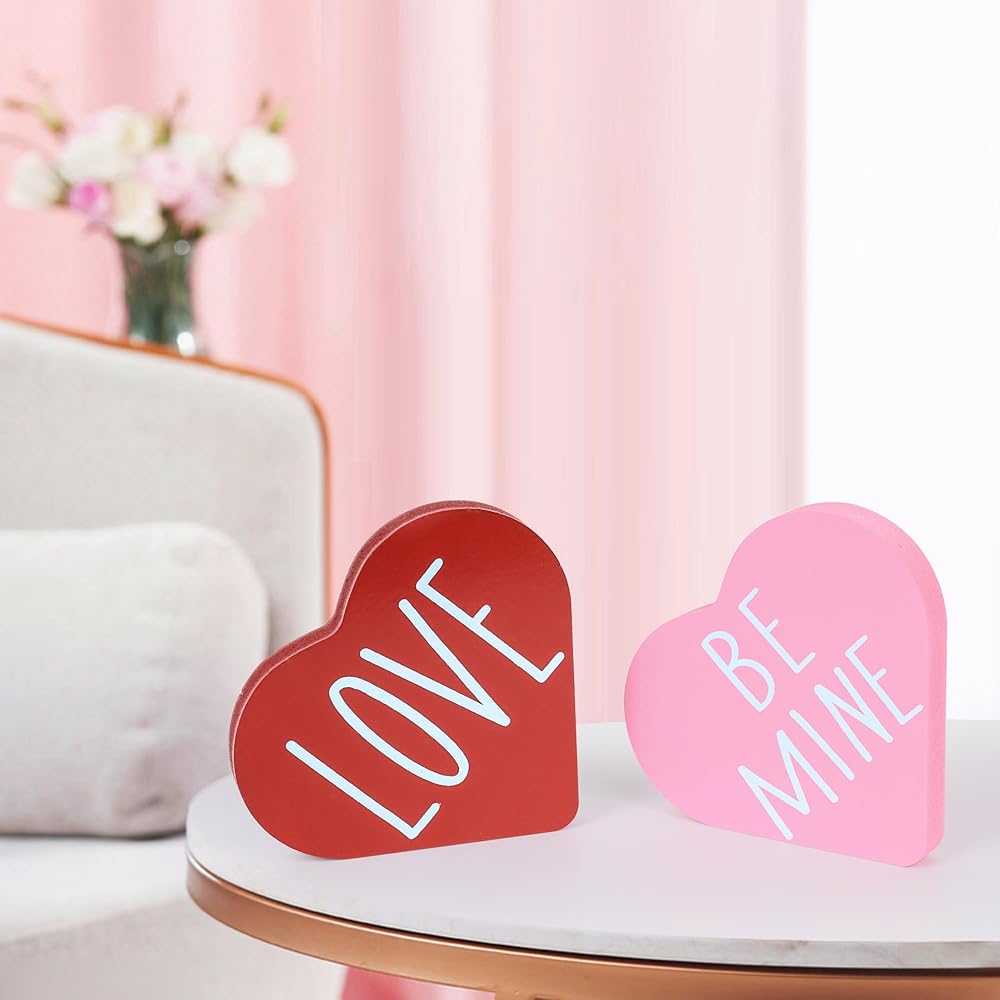 Valentine's Day Tray Decor Set: The package includes 2 pieces of Valentine's Day heart table decor, the red heart is printed with LOVE, and the pink heart is printed with BE MINE. Enough to satisfy your needs for home decoration on Valentine's Day.