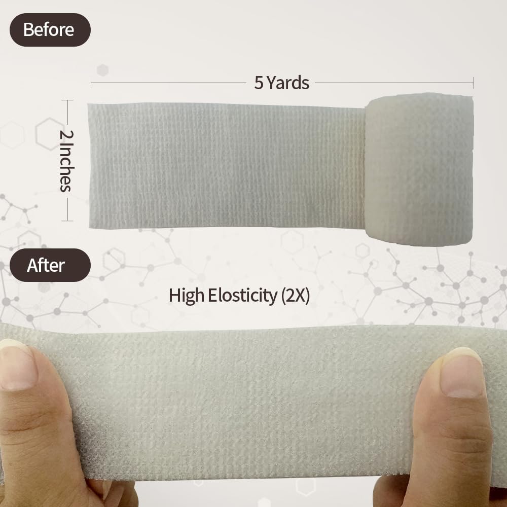 • ذاتية اللصق ومقاومة للماء: تتميز لفافة الضمادات ذاتية اللصق بقوة لاصقة كافية للحصول على تأثير ثابت أثناء ممارسة الرياضة، ولا تلتصق بالشعر والجلد، ولا يؤثر الماء أو العرق على قوة اللصق الذاتي، كما أن اللصق الذاتي عديم الرائحة غلاف الضمادة لا يترك مادة لاصقة بعد إزالتها.