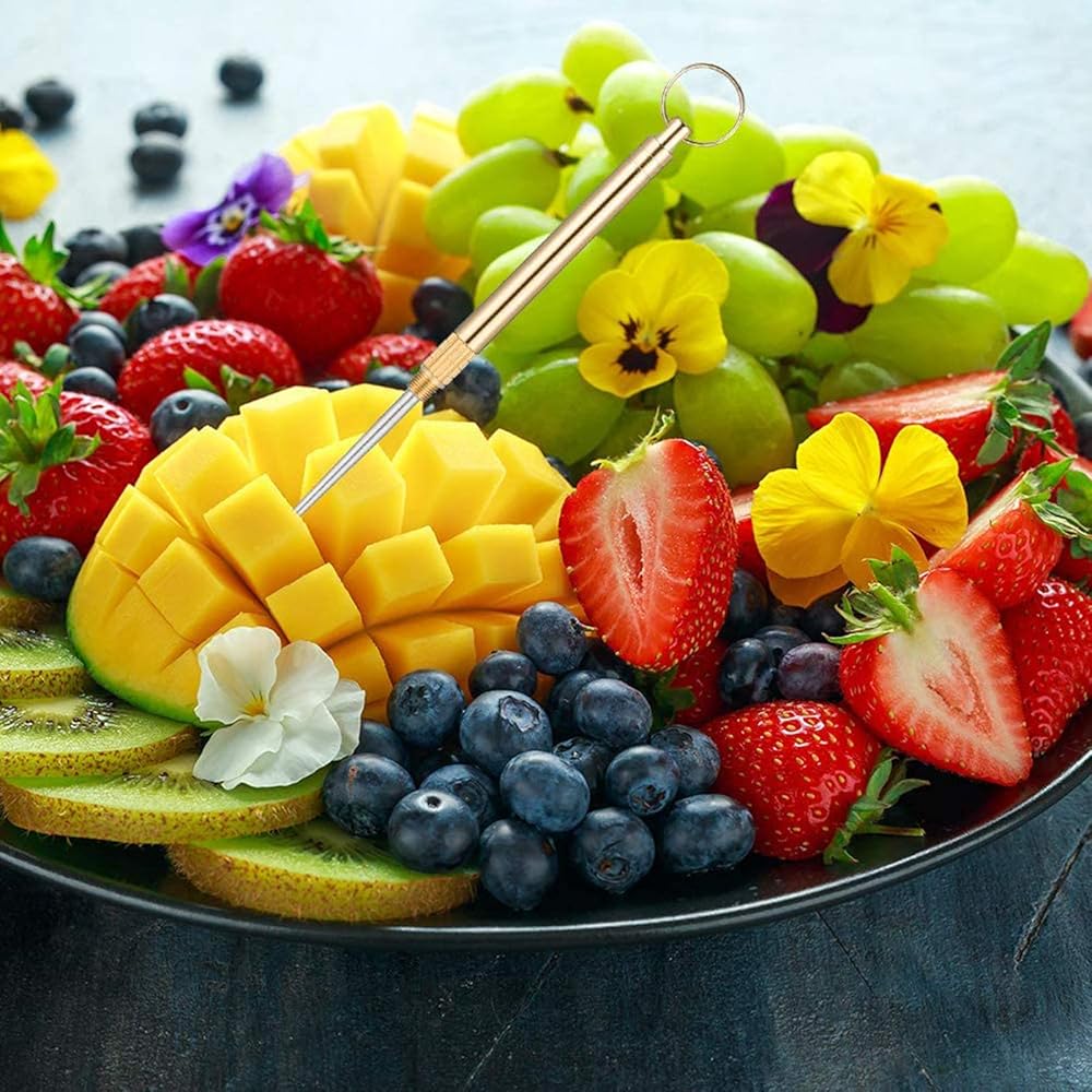 Great for camping, hiking, picnics, etc. or outdoor activities. It can also be used as a fruit stick.