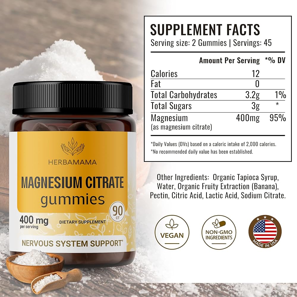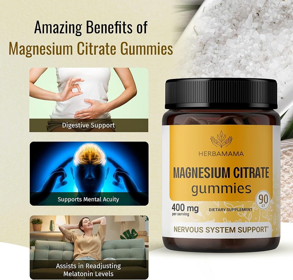 صمغ سيترات المغنيسيوم (Citrato De Magnesio) - أقراص مضغ عالية الجودة وصحة الأمعاء - أفضل مكمل لسترات المغنيسيوم للبالغين - 90 قطعة مضغ نباتية وخالية من الغلوتين - 400 ملغ