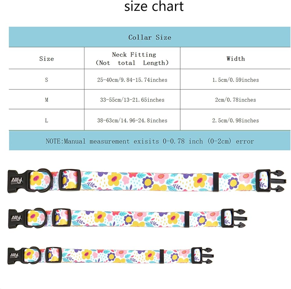 【حجم قابل للتعديل】- طوق كلب صغير للكلاب الصغيرة يناسب أعناق الكلاب مقاس 9.8 بوصة - 15.7 بوصة (25-40 سم)، وعرض 3/5 بوصة (1.5 سم)، كما أن الجرو والقطط مناسبان لأطواق الكلاب الزهرية.