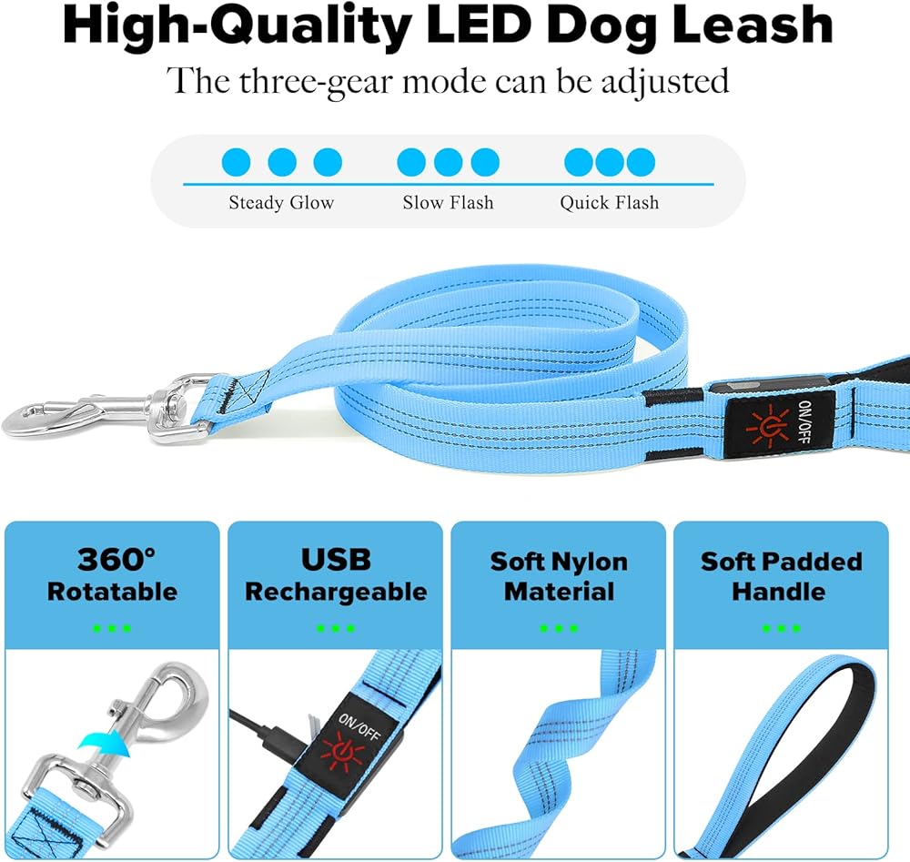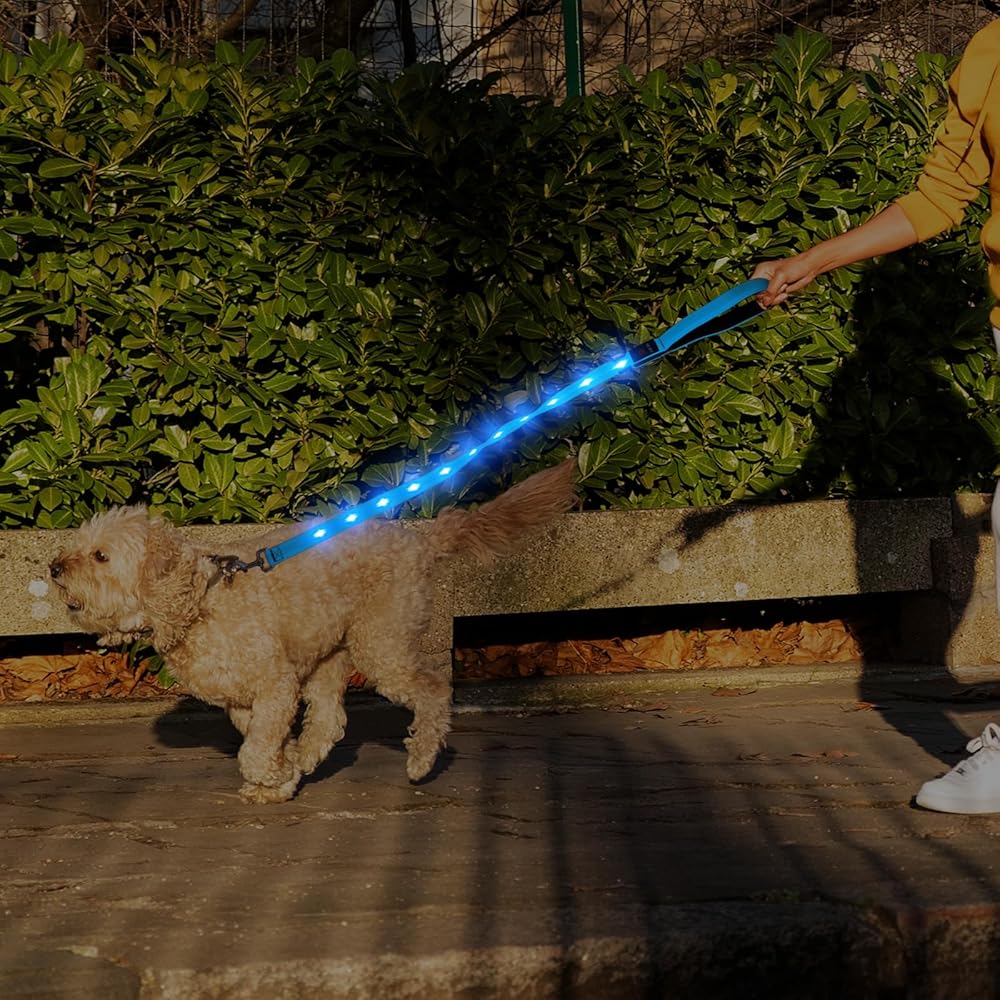 ★مقود أمان للكلاب مزود بإضاءة LED - مقود الكلاب من Illumifun مزود بإضاءة LED ساطع ويمكن رؤيته بسهولة. إنه مصنوع من نسيج النايلون مع شرائط LED عالية الوضوح مما يحسن رؤية كلبك وسلامته.