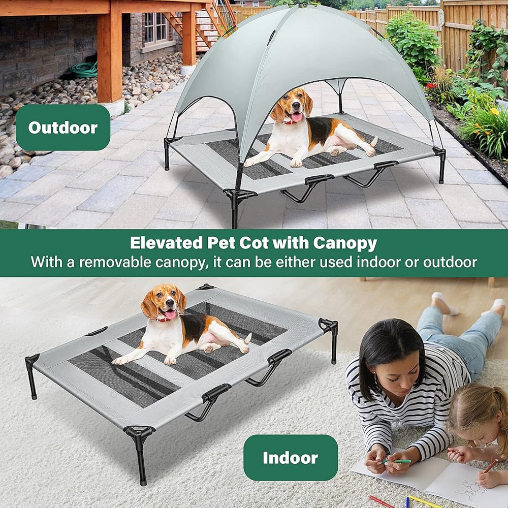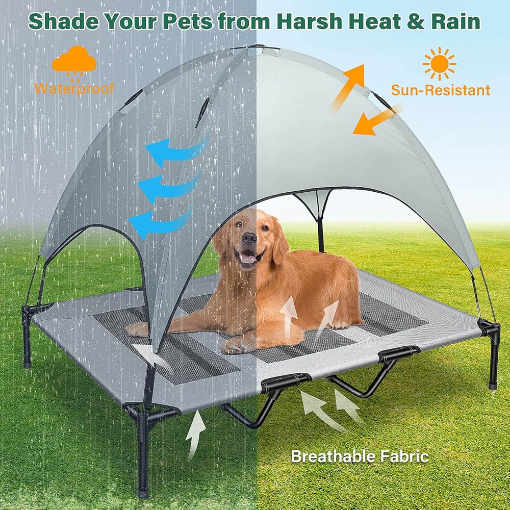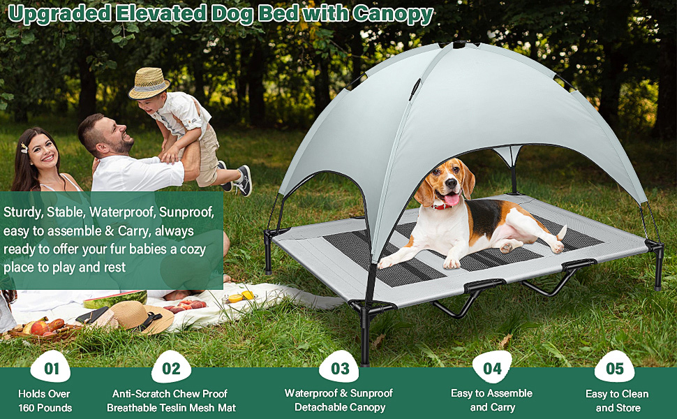 🐶【الاستخدام الداخلي والخارجي】: يأتي سرير الكلاب المرتفع هذا مع مظلة قابلة للفصل والتي يمكن أن توفر مظلة للكلاب في الصيف للحفاظ على انتعاشها. لذلك فهو مناسب للاستخدام في الهواء الطلق. عندما نزيل المظلة، فهو سرير كلب مثالي للاستخدام في الأماكن المغلقة. أقدام مطاطية مقاومة للانزلاق توفر الحماية للأرضيات الداخلية. تصميم مرتفع يجلب لحيوانك الأليف صيفًا منعشًا!
