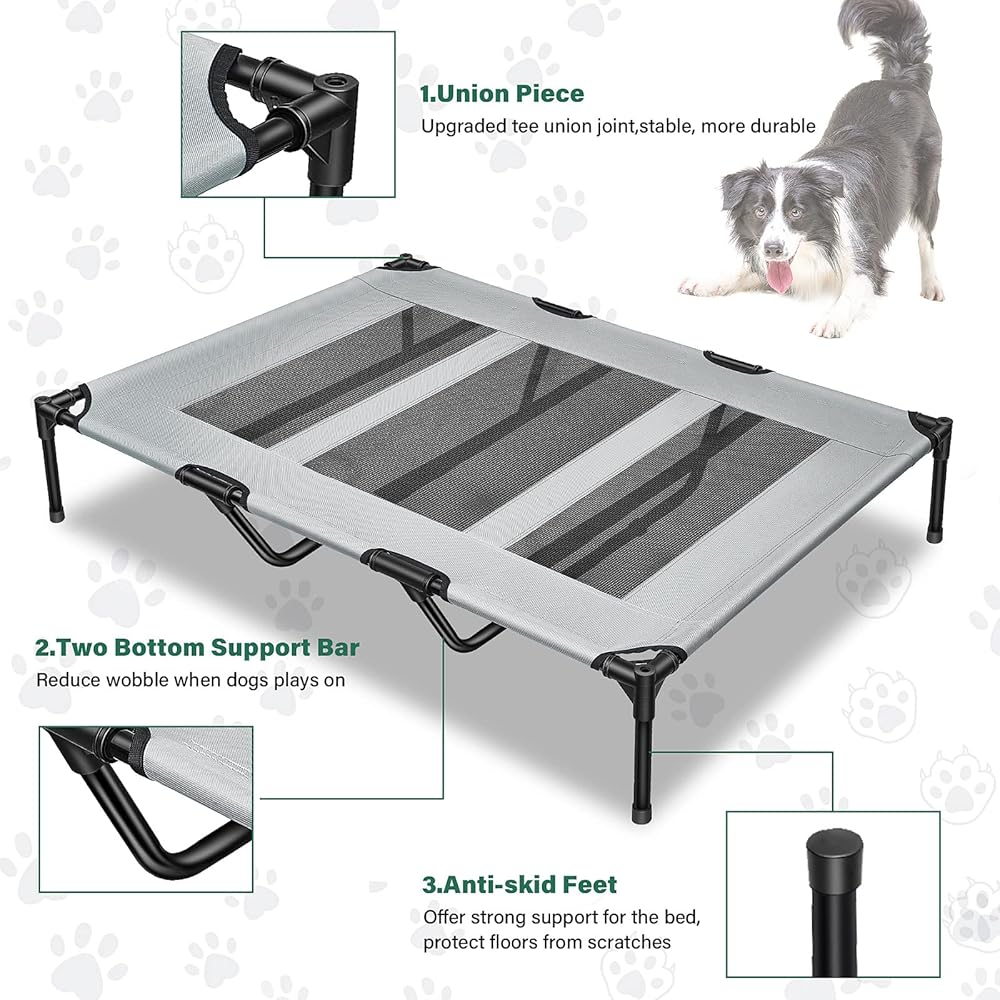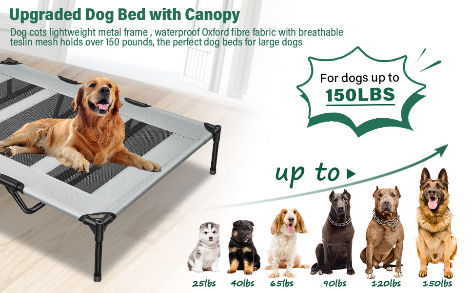 أسرة الكلاب مصنوعة من إطار معدني قوي وقماش اوكسفورد مقاوم للمضغ، ومجهزة بساقين إضافيين لدعم السرير في الأسفل لتوفير دعم قوي لتحمل أكثر من 150 باوند، سرير الكلاب المثالي للكلاب الكبيرة.