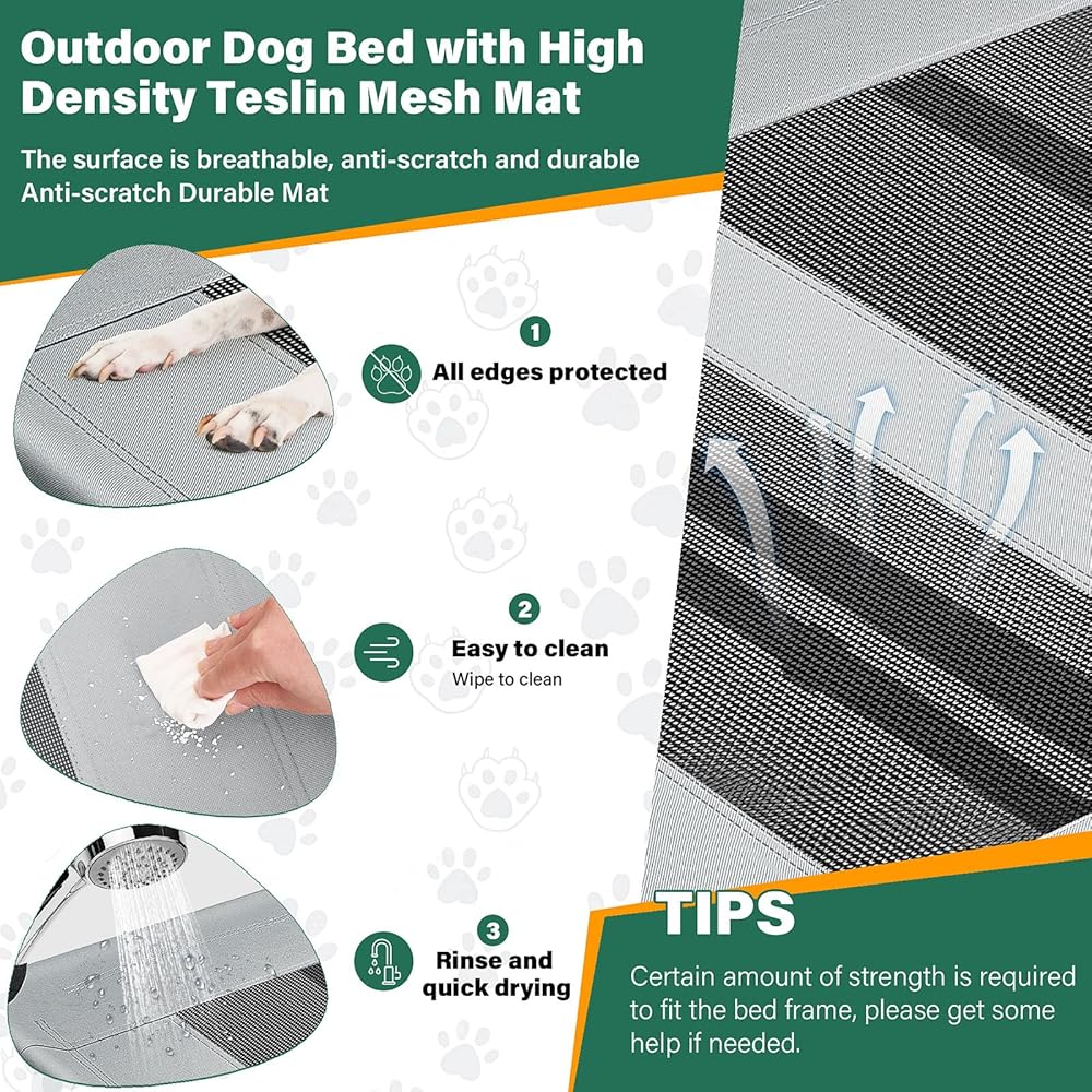 🐶【سرير مرتفع للحيوانات الأليفة】: ارفع سرير الكلب إلى ارتفاع أعلى، مما يعني المزيد من التهوية لمنع حيواناتك الأليفة من الأرض الصلبة والأوساخ وتوفير سطح مريح وجيد التهوية للنوم. وفي الوقت نفسه، فإن شبكة تيسلين جيدة التهوية تجعل التنظيف أسهل.