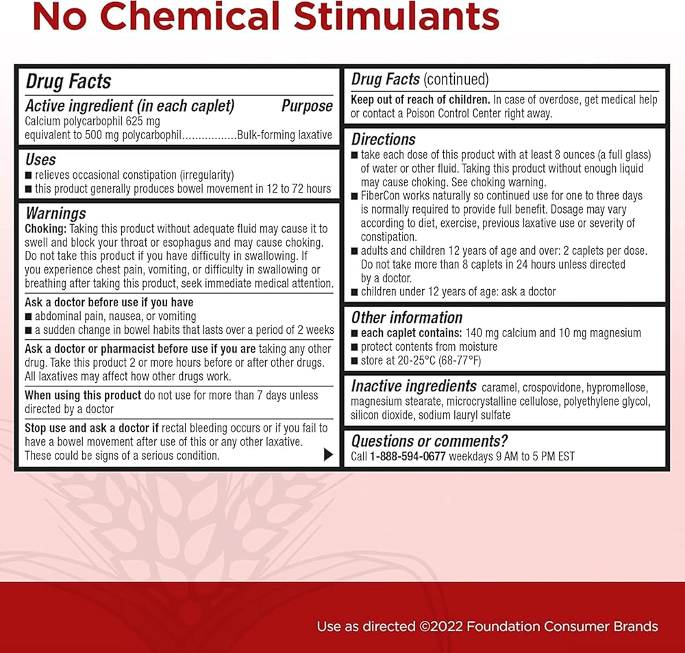FiberCon relieves occasional constipation to help restore and maintain regularity.