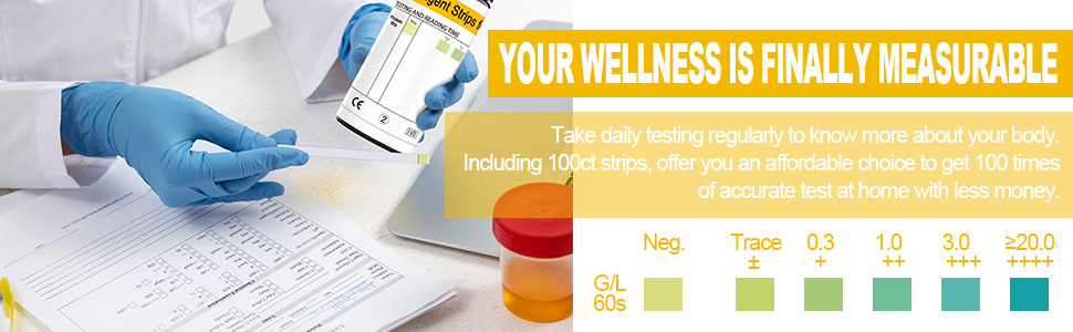 مريح وسهل الحصول على نتائج دقيقة - ما عليك سوى غمس عينة البول لمدة ثانيتين، والانتظار لمدة 60 ثانية وقراءة النتائج بسهولة لتتبع حالتك البدنية في أي وقت.