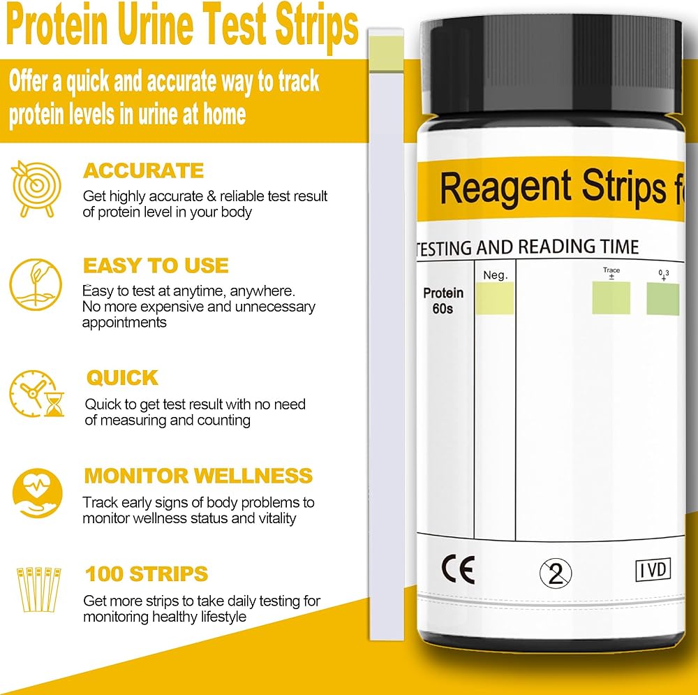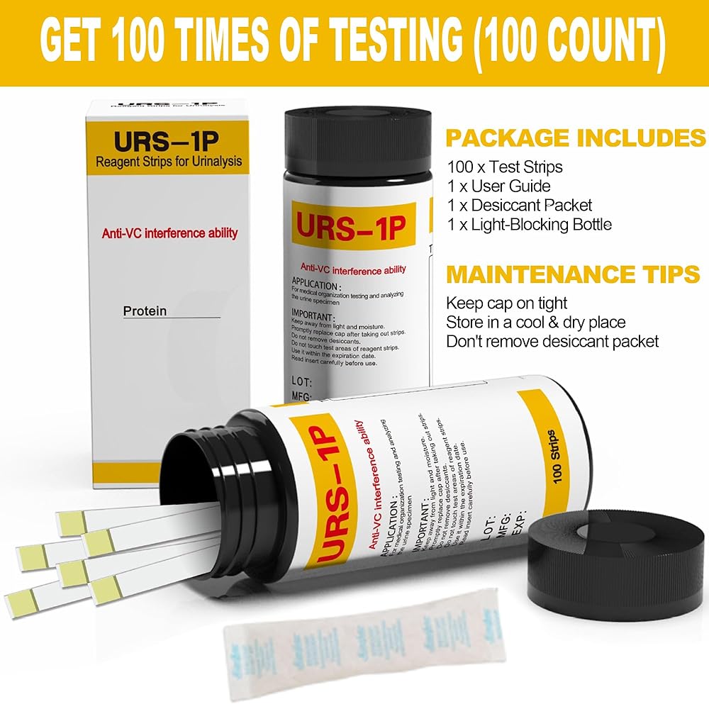 مجموعة شرائط اختبار بروتين البول 100 قيراط - سهلة الاستخدام للحصول على نتائج سريعة ودقيقة، شرائط اختبار بروتين البول في المنزل، نتائج سهلة القراءة | 100 شريط