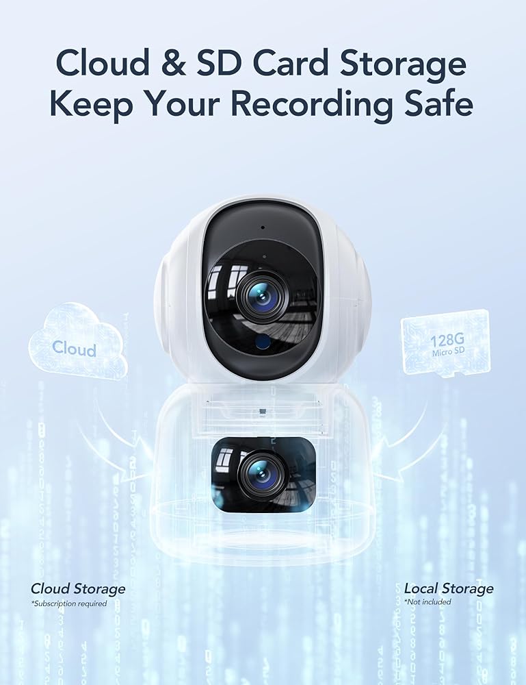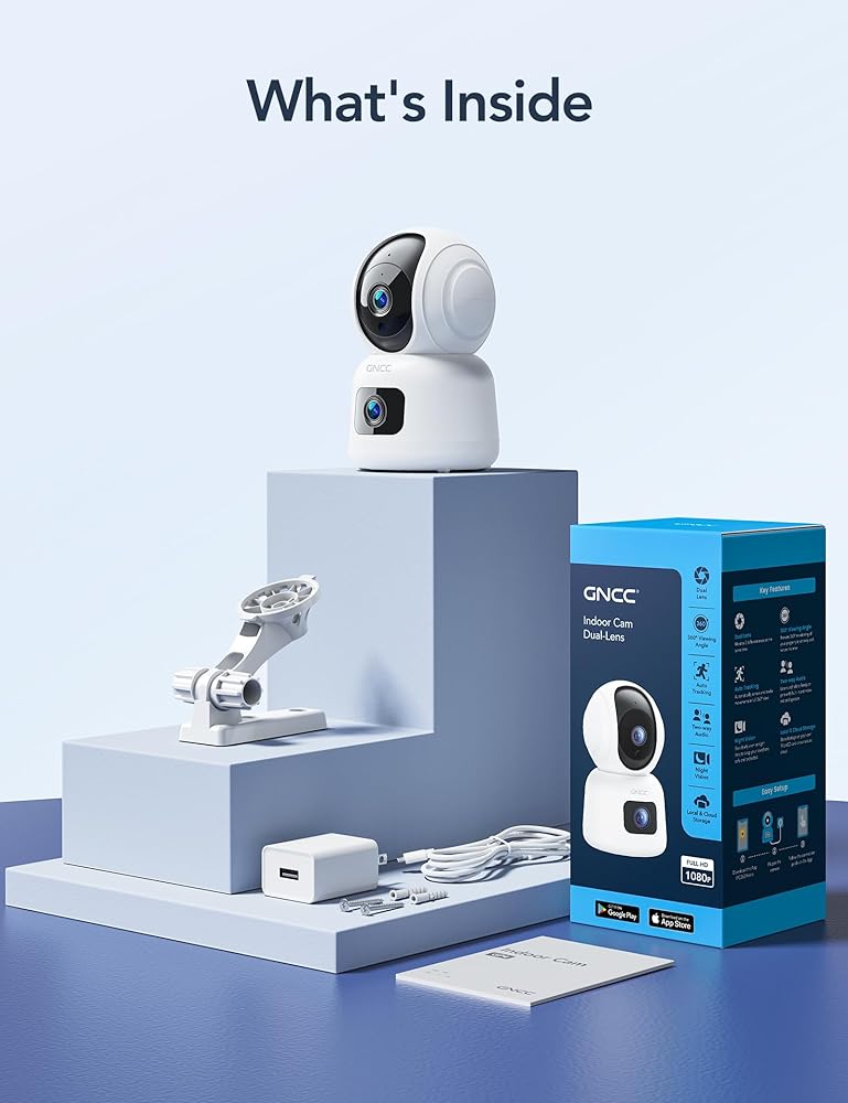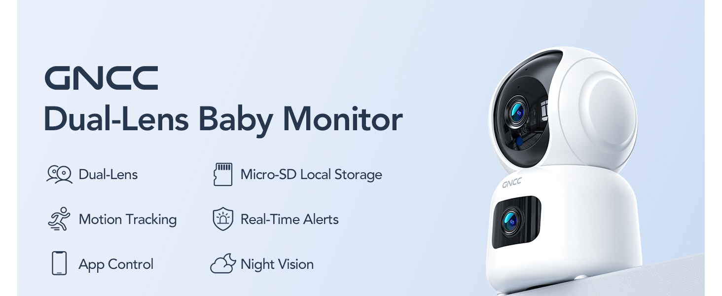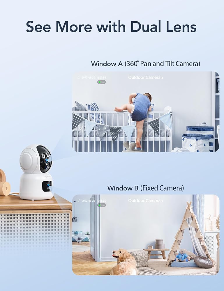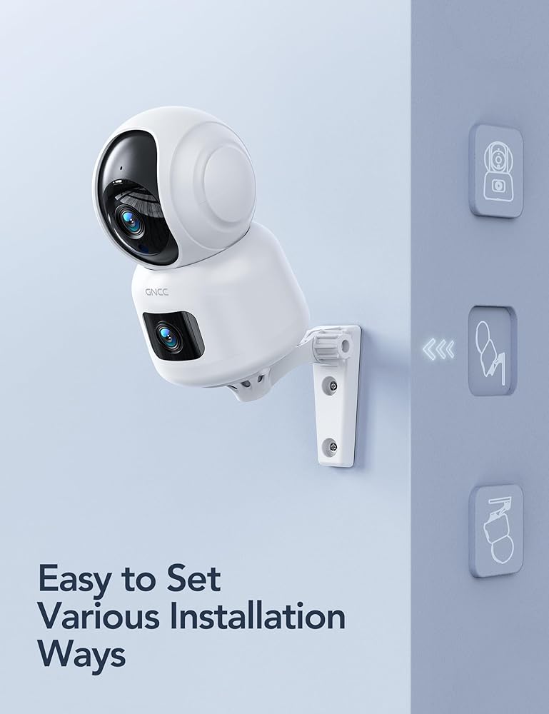 جهاز مراقبة الأطفال GNCC مع كاميرات مزدوجة، كاميرا PTZ بزاوية 360 درجة وكاميرا ثابتة، تتبع الحركة بدقة 1080 بكسل، رؤية ليلية - مثالية لمراقبة الحيوانات الأليفة والأمن الداخلي، التخزين المحلي والسحابي، P4
