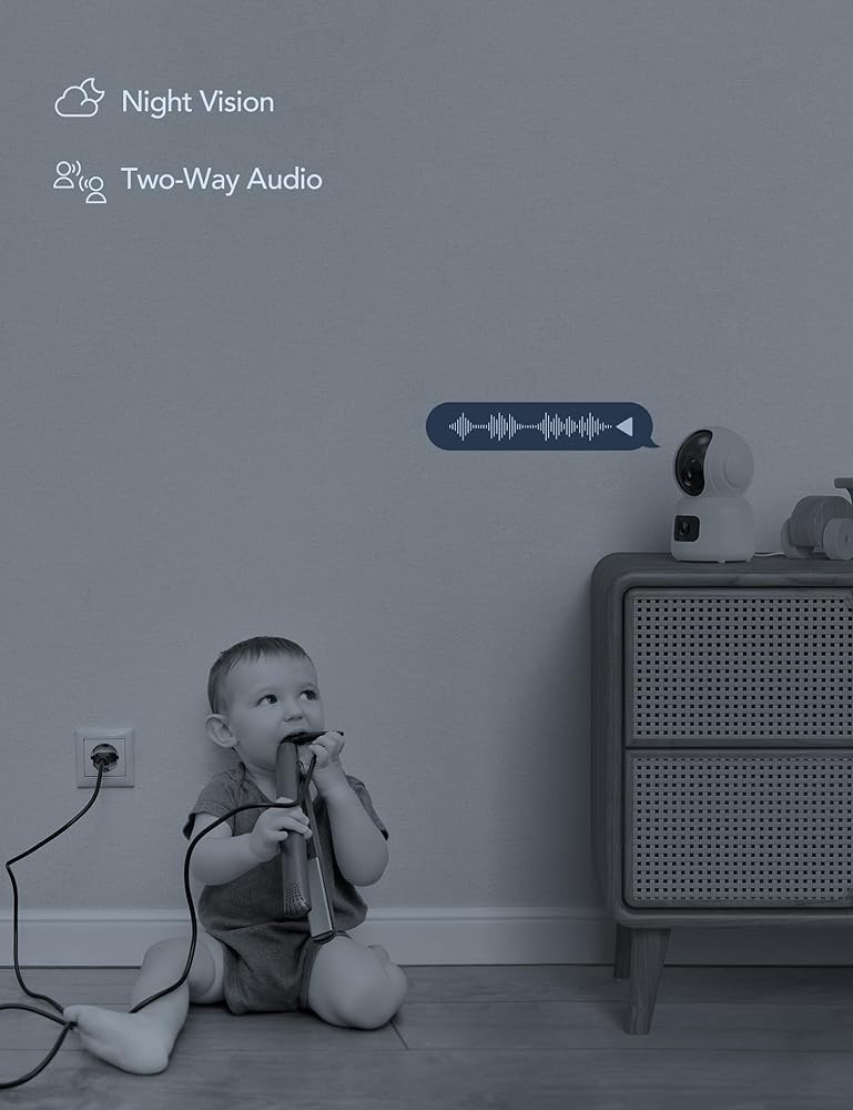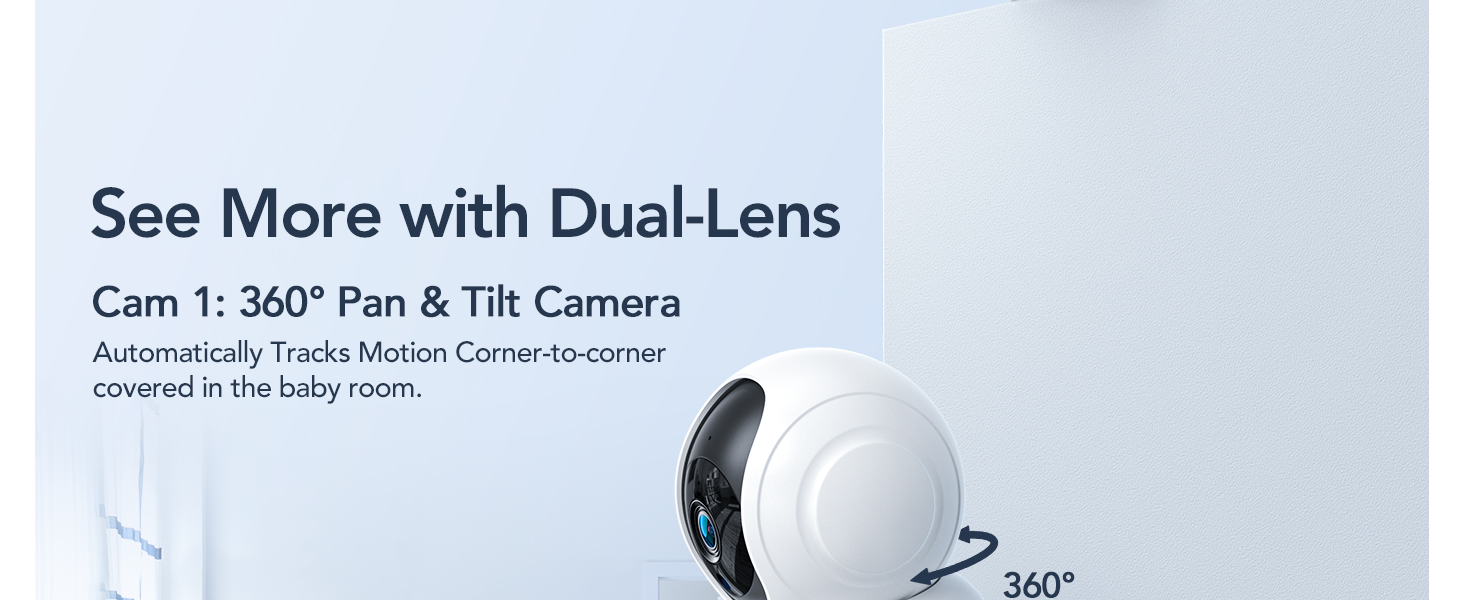 【جهاز مراقبة الأطفال بكاميرا مزدوجة】تمتع بتجربة مراقبة شاملة من خلال جهاز مراقبة الأطفال بالكاميرا المزدوجة. كاميرا واحدة، مع وظيفة الدوران والإمالة 360 درجة، تلتقط كل ركن من أركان غرفة الطفل، بينما توفر الكاميرا الثابتة الأخرى مراقبة على مدار الساعة طوال أيام الأسبوع للمناطق الرئيسية مثل سرير الطفل.