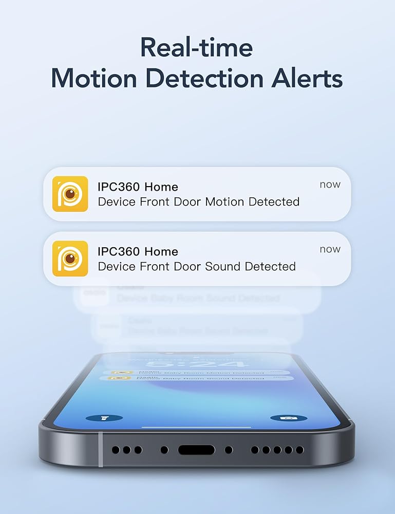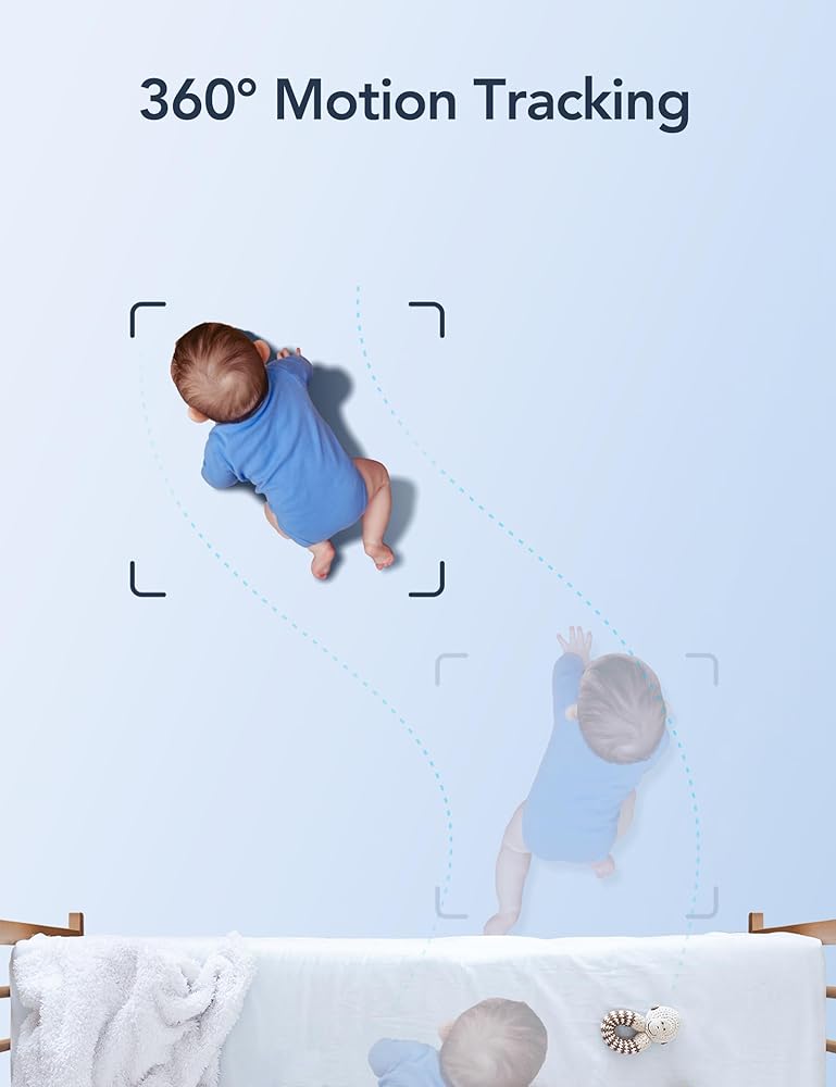 [تتبع الحركة] يستشعر ويتتبع غرفة الطفل تلقائيًا من الزاوية إلى الزاوية. يدور 355 درجة أفقيًا و110 درجة رأسيًا. يمكنك التحريك والإمالة بسهولة باستخدام تطبيق IPC360 Home.