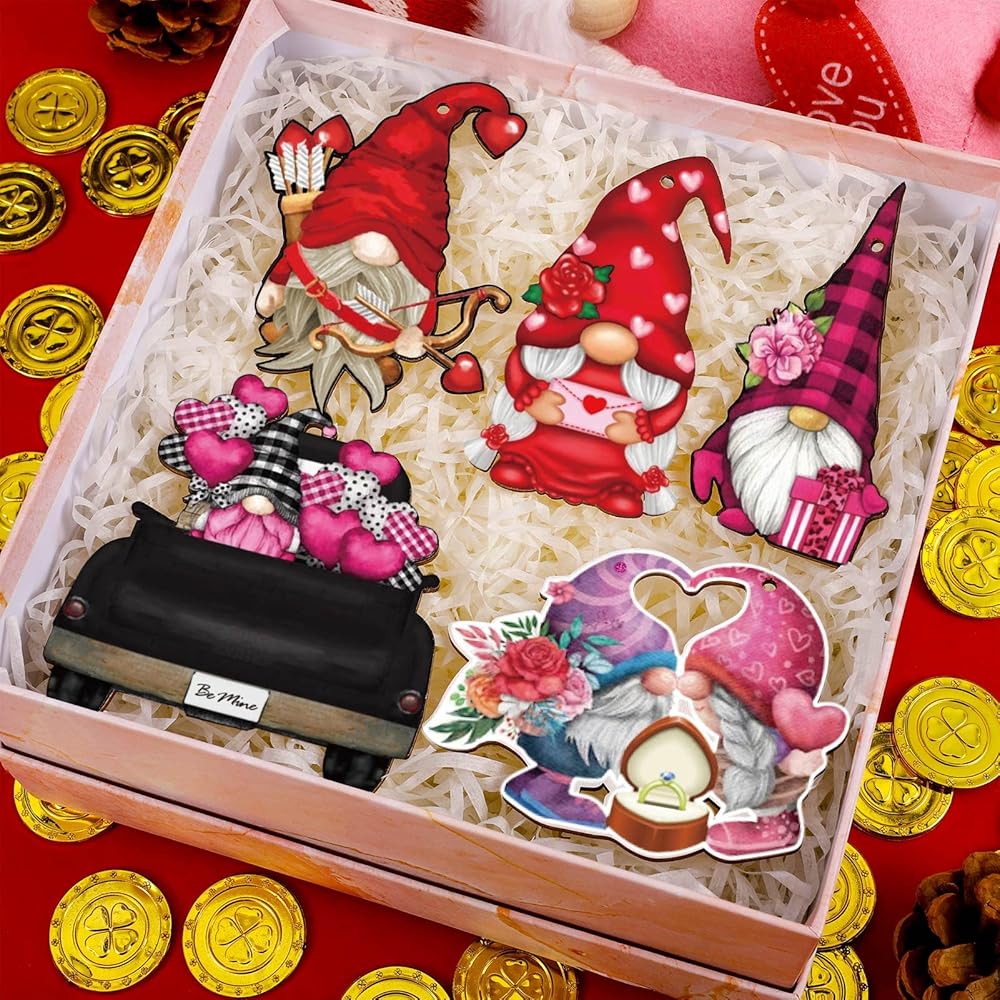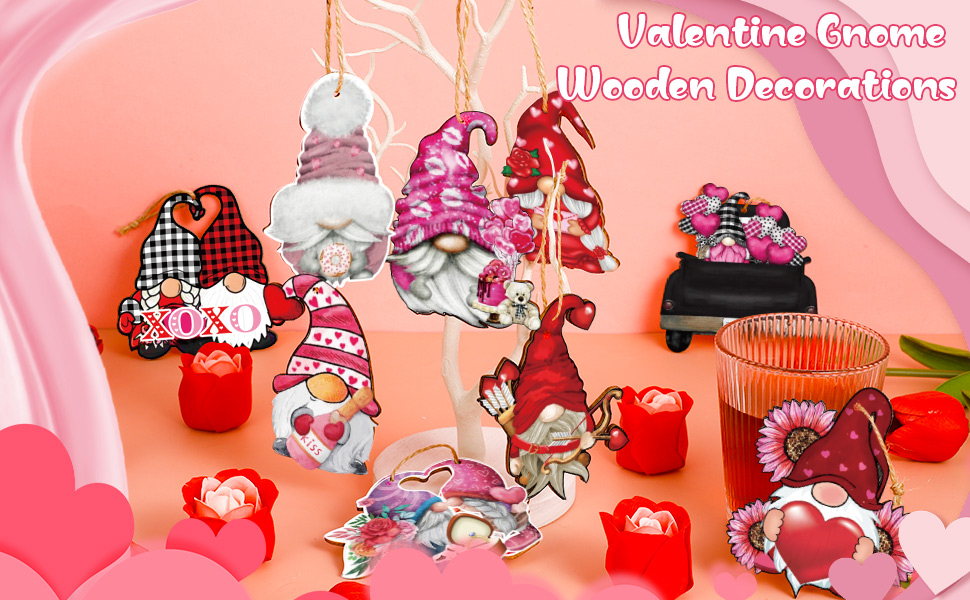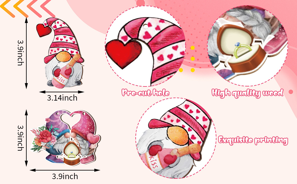 Fine Workmanship - Our valentine gnome ornaments are made of high quality wood. Polished with smooth edge surface. The painting on the front is clear and bright, and the empty back is ready for DIY. Durable to serve you for a long time