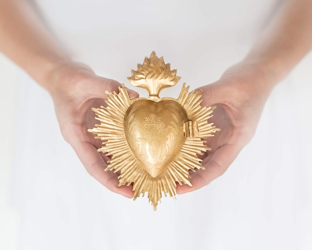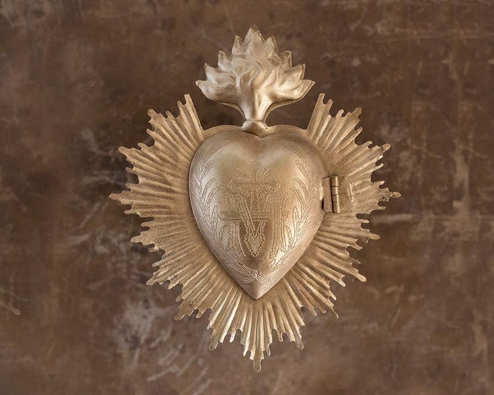 قلب ميلاغرو - ميلاجرو تعني المعجزة باللغة الإسبانية. يمكن تعليق هذه التعليقات الشعبية الدينية على التعديلات، حول رقبة دمى أو تماثيل سانتوس. يفتح القلب ليكشف عن مساحة للصلاة أو الرغبة أو ملاحظات الامتنان أو الشكر. يحتوي هذا القلب المقدس على خطاف على الظهر إذا اخترت تعليقه. يُطلق عليه أيضًا اسم ex-voto، ويمكن استخدامه كزينة للكريسماس أو ديكور العطلات أو هدية تعميد.